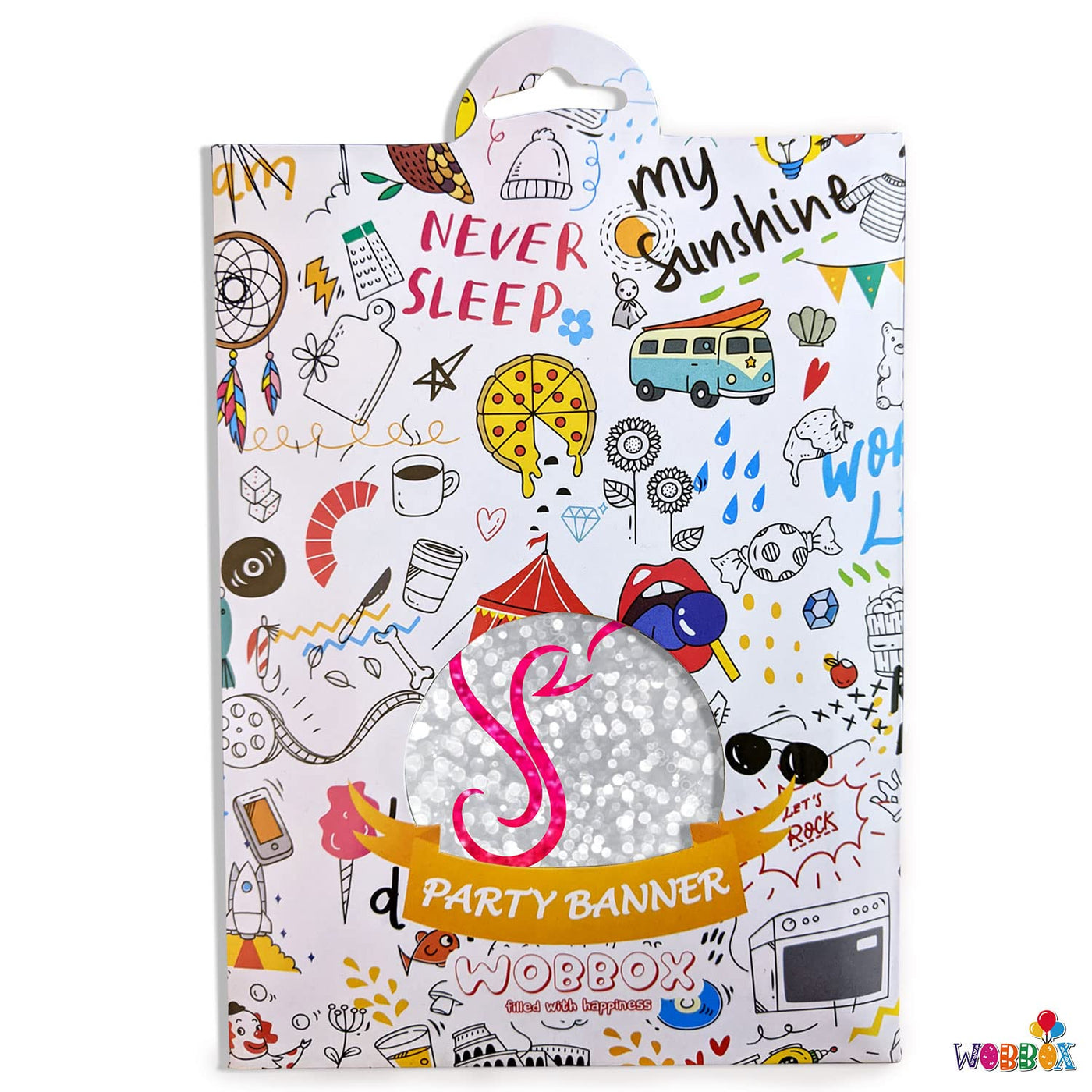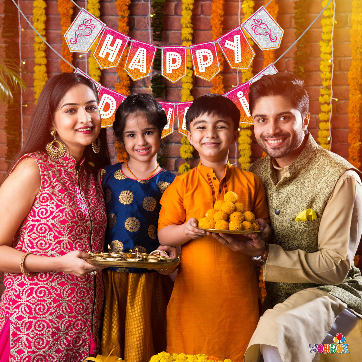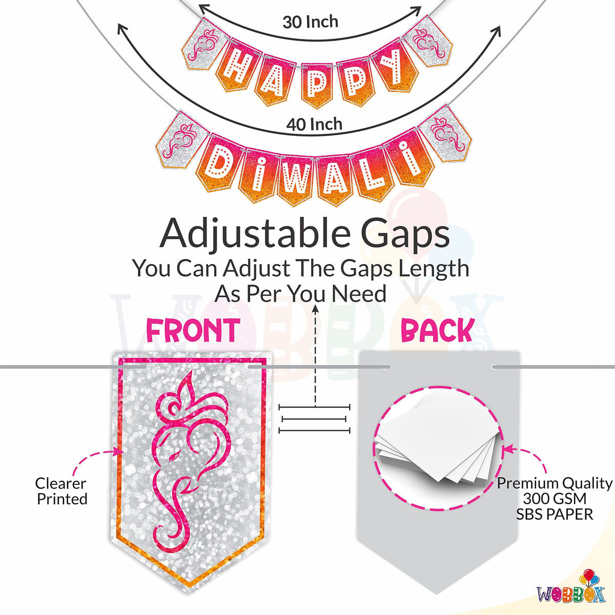 WOBBOX Diwali Decoration Bunting Banner, Happy Diwali Pink Red & Yellow Gliter With White Font, Diwali Decoration Item, Diwali D