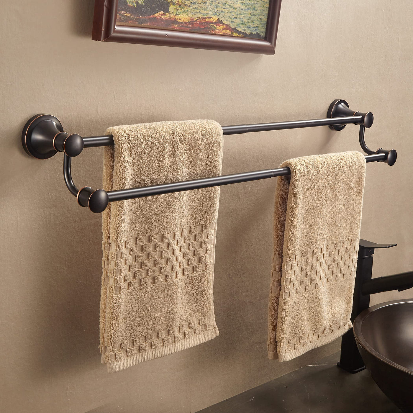 - Q: What is the adjustable length of the WOLIBEER Bronze Double Towel Bar? A: The WOLIBEER Bronze Double Towel Bar is adjustable from 14.96 inches to 26.57 inches.