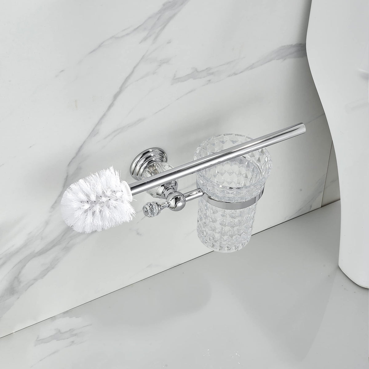 Wolibeer Crystal Toilet Brush Holder, Chrome Toilet Cup Set With Polished Silver Brush Handle Wall Mounted For Bathroom - Decora