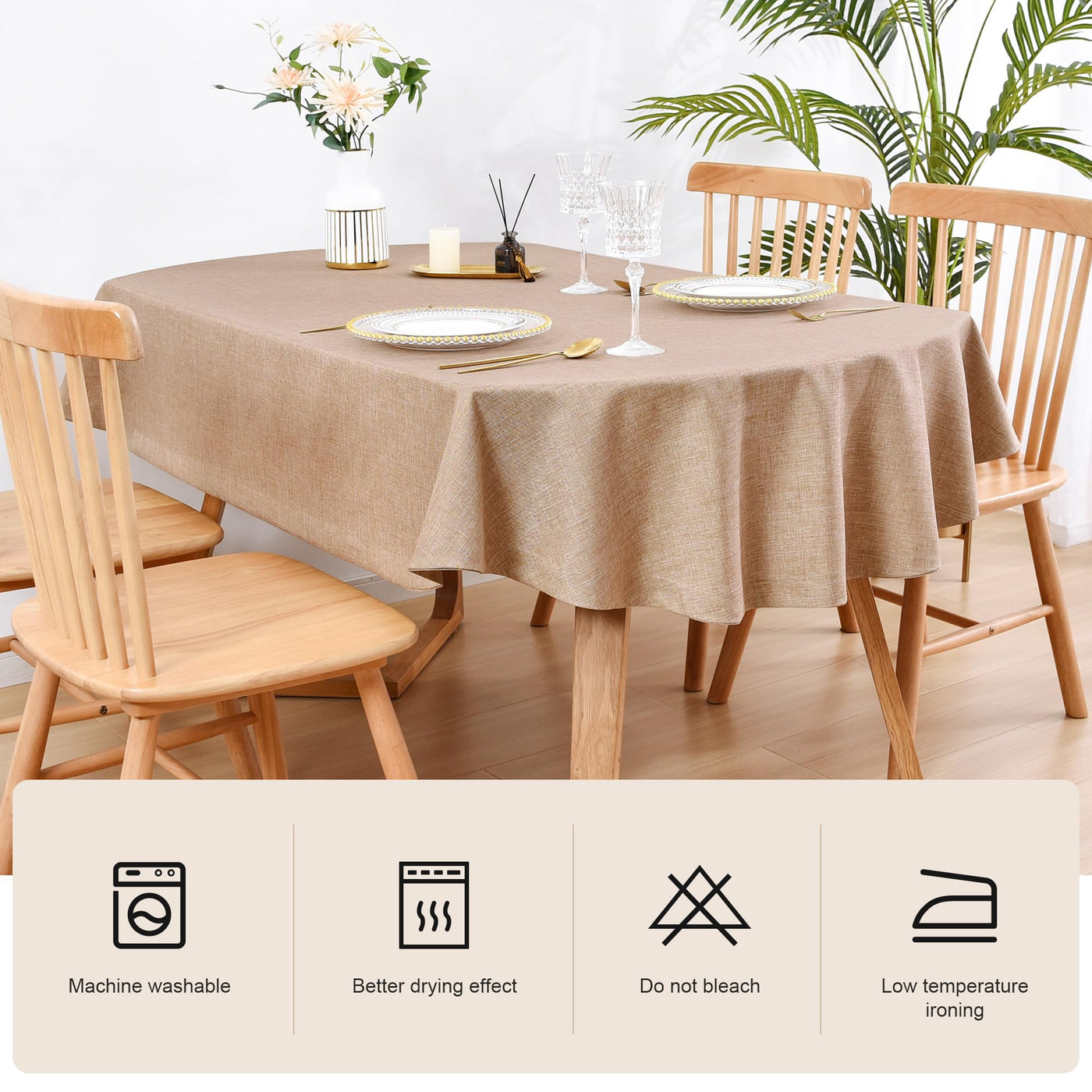Wolkemer Faux Linen Large Oval Tablecloth Heavy Duty Wrinkle Resistant Fabric Table Cloths 60 x 120 Inch Flaxen Farmhouse Rustic