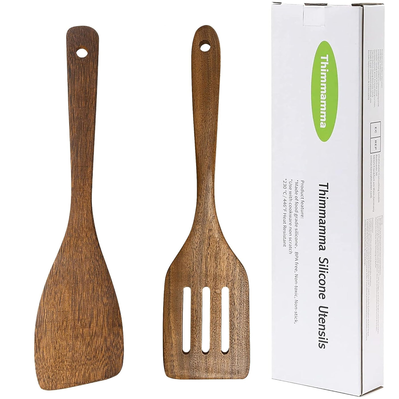 When it comes to everyday cooking, having the right tools makes all the difference-and this 2-pack wooden spatula set is designed to bring comfort, performance, and beauty into your kitchen. Crafted from solid natural wood, this set includes one flat wooden spatula and one slotted spatula, both measuring 12.3 inches long and 4mm thick. The size and shape strike just the right balance-long enough to reach into deeper pans, but slim and light enough for quick flips, gentle stirring, and all-day use. Whether youre saut ing vegetables, flipping eggs, or serving up pancakes, these wooden spatulas for cooking help you move through each step with ease and confidence. Made from durable, eco-friendly wood with no toxic coatings, these are the kind of wooden kitchen utensils that let you cook freely without worrying about melting plastic or scratched nonstick surfaces. If youve been searching for a wood spatula for nonstick pans or cast iron, this sets got you covered. Its heat-resistant, non-toxic, and safe for all cookware, which makes it a top pick for anyone who cares about both health and quality. These are truly wood spatulas for cooking non toxic kitchens-a must-have for every mindful home chef. The smooth, sanded finish feels great in hand, and the natural wood grain gives each piece a warm, rustic look that fits beautifully in any kitchen setup. From farmhouse-style countertops to modern minimalism, this wooden spatula set blends right in and adds a thoughtful, handcrafted touch. If youve used a silicone spatula with a wooden handle before, youll love how these full wood utensils feel-lightweight, sturdy, and incredibly comfortable to grip. You wont find yourself reaching for anything else once these are part of your daily routine. Each spatula wood tool is versatile and thoughtfully shaped to help you handle all kinds of cooking tasks. The flat wooden spatula is ideal for flipping delicate foods like fish, omelets, or crepes, while the slotted turner helps you lift fried items or vegetables without carrying all the oil with them. Whether you re mixing sauces, folding ingredients, or turning crispy bacon, these tools move with you in the kitchen. Theyre just as handy for big weekend breakfasts as they are for simple weeknight dinners. And if you re into Latin cooking, the smaller size and smooth edges make these perfect small wooden spatulas for arepas. What sets this set apart is its ability to balance functionality and simplicity. Unlike metal tools that can scratch pans or plastic ones that can warp, these wooden turners for frying stay cool, wont melt, and are safe to use with all your favorite cookware. Theyre especially great as wooden spatula options for cast iron, providing control and gentleness that preserves your pans surface while giving you reliable flipping power. Cleanup is quick and easy-just rinse with warm water and dry with a towel. The spatulas have smooth, non-porous surfaces that resist absorbing oils or odors, so you wont have to deal with lingering smells or stains after cooking. The hanging hole at the end of each handle also makes storage simple, whether you hang them on a hook or slide them into a drawer. These wood kitchen utensils are low-maintenance and built to last, making them an excellent swap for old, worn-out plastic spatulas. Whether you re stocking your first apartment kitchen or replacing a drawer full of mismatched tools, this wood spatula set is a smart, stylish upgrade. It also makes a thoughtful gift for new homeowners, wedding registries, or anyone who enjoys cooking with natural, non-toxic materials. From the wide wooden spatula that supports heavier items to the curved wooden spatula for cooking in tight spaces, every piece in this set is designed to work hard and look good doing it. Theres something timeless about cooking with wooden products. They bring a sense of calm and tradition to the hustle of modern kitchens. And while tools like wooden spoonulas and thin wooden spatulas each have their place, this set brings together the most essential shapes for everyday use. It even fills in for less common tools like a wooden egg turner or a wooden spatula with holes. Whether you re flipping, stirring, scraping, or serving, these wooden spatulas offer the versatility to handle it all. Your kitchen deserves tools that feel as good as they look-and this earlywood spatula set is ready to be your new go-to. Thoughtfully made, beautifully finished, and endlessly useful, these wood utensils prove that sometimes, simple is better. Add them to your cart today and experience the everyday magic of cooking with well-made wooden spatulas.