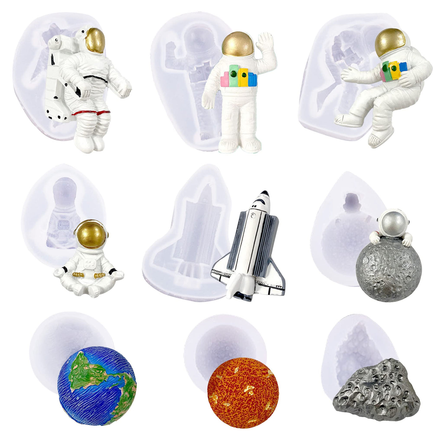- Q: How many molds are included in the package? A: The package includes 9 different astronaut-themed fondant silicone molds.