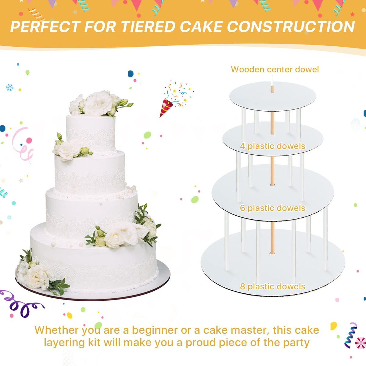Worldity 230Pcs Cake Boards Tiering Kit, 12 Inch,10 Inch, 8 Inch, 6 Inch Cake Cardboard Rounds, Parchment Paper Rounds, Wooden D