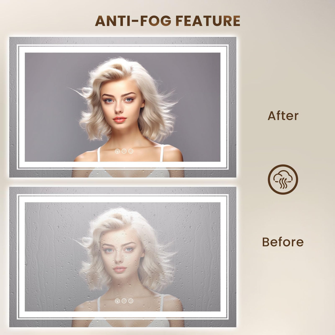 • Q: How does the anti-fog feature work? A: The mirror is equipped with a built-in defogger that keeps the surface clear even after hot showers, automatically turning off after 1 hour.