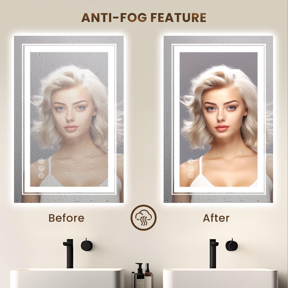 - Q: Is the mirror fog-resistant? A: Yes, the WTTY RGB LED Bathroom Mirror features an anti-fog function that keeps the mirror clear after a shower. You can activate it by touching the button.