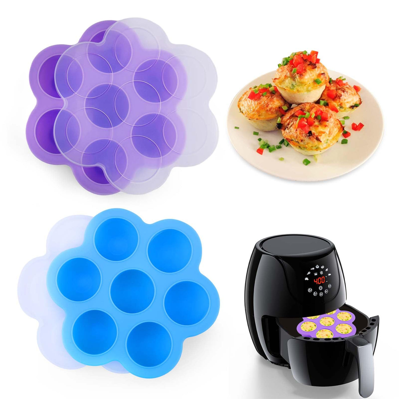 Xangnier Silicone Air Fryer Egg Bite Mold,2 Pack Reusable Egg Bites Pan With Lid-Alternative To Sous Vide Egg Bite Maker,Air Fry