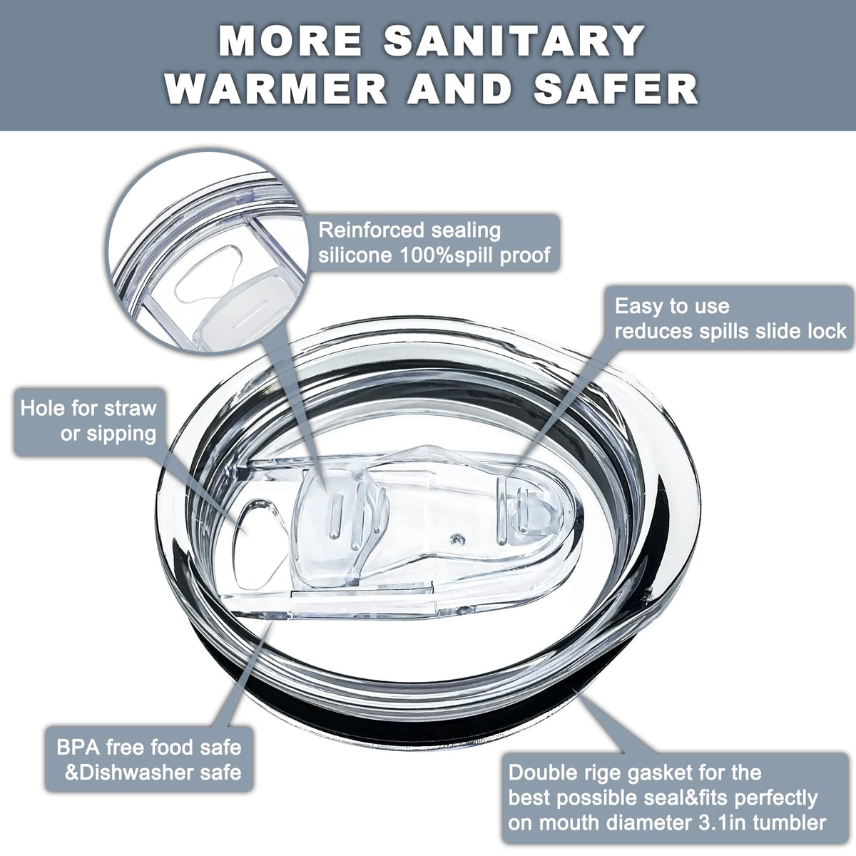 Xccme 30Oz Skinny Tumbler Replacement Lids 4 Pack,Spill Proof Splash Resistant Silicone Sliding Covers,Straw Friendly, Bpa Free