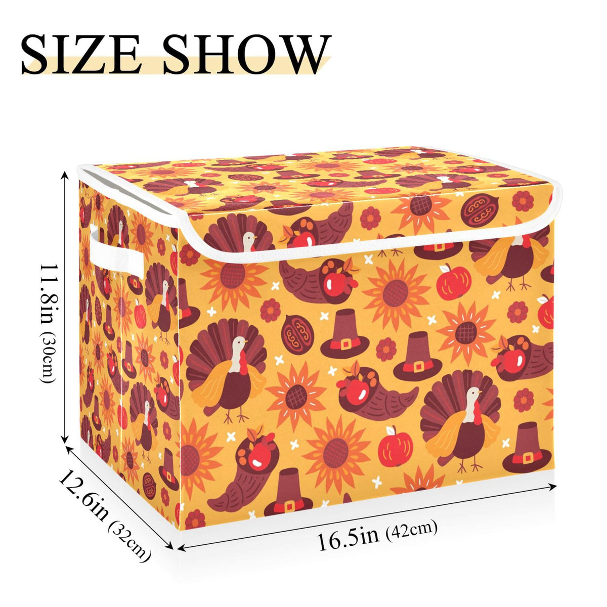 Xigua Thanksgiving Sunflower Turkey Storage Bins With Lids And Carrying Handle,Foldable Storage Boxes Organizer Containers Baske