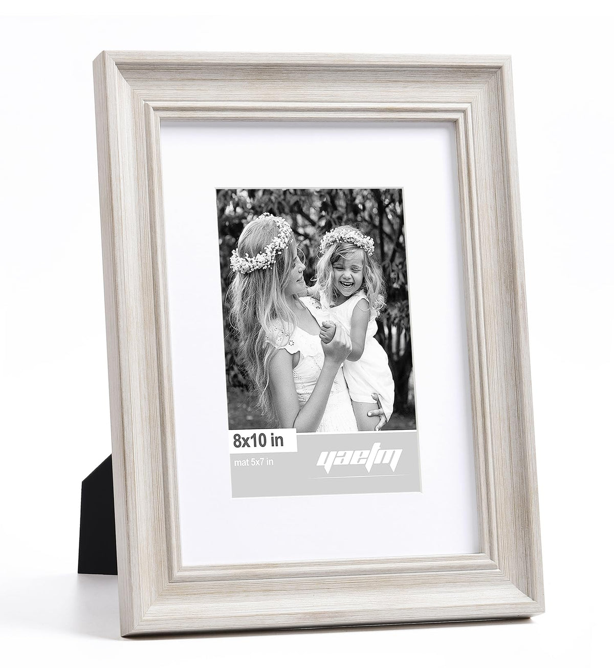 Size: 8 x 10 Inch | Color: Rustic White | frame including: 4 pack YAETM frames is specialized in highest quality and creative photo frame more than 10 years. The frame is perfect to display your most cherished pictures and photos, lighten up your home or office. Frame Material: Plastic Surface Cover Material: Tempered glass Frame Display: Tabletop & Wall Mounting Frame Orientation: horizontal or vertical Care and Cleaning: Wipe Clean Frame Dimensions: 10.5 x 12.5 Assembly Details: no assembly required Total number of images held: 1 Home Placement: wall Standard Image Size Held: 5x7 inch with mat / 8x10 inch without mat