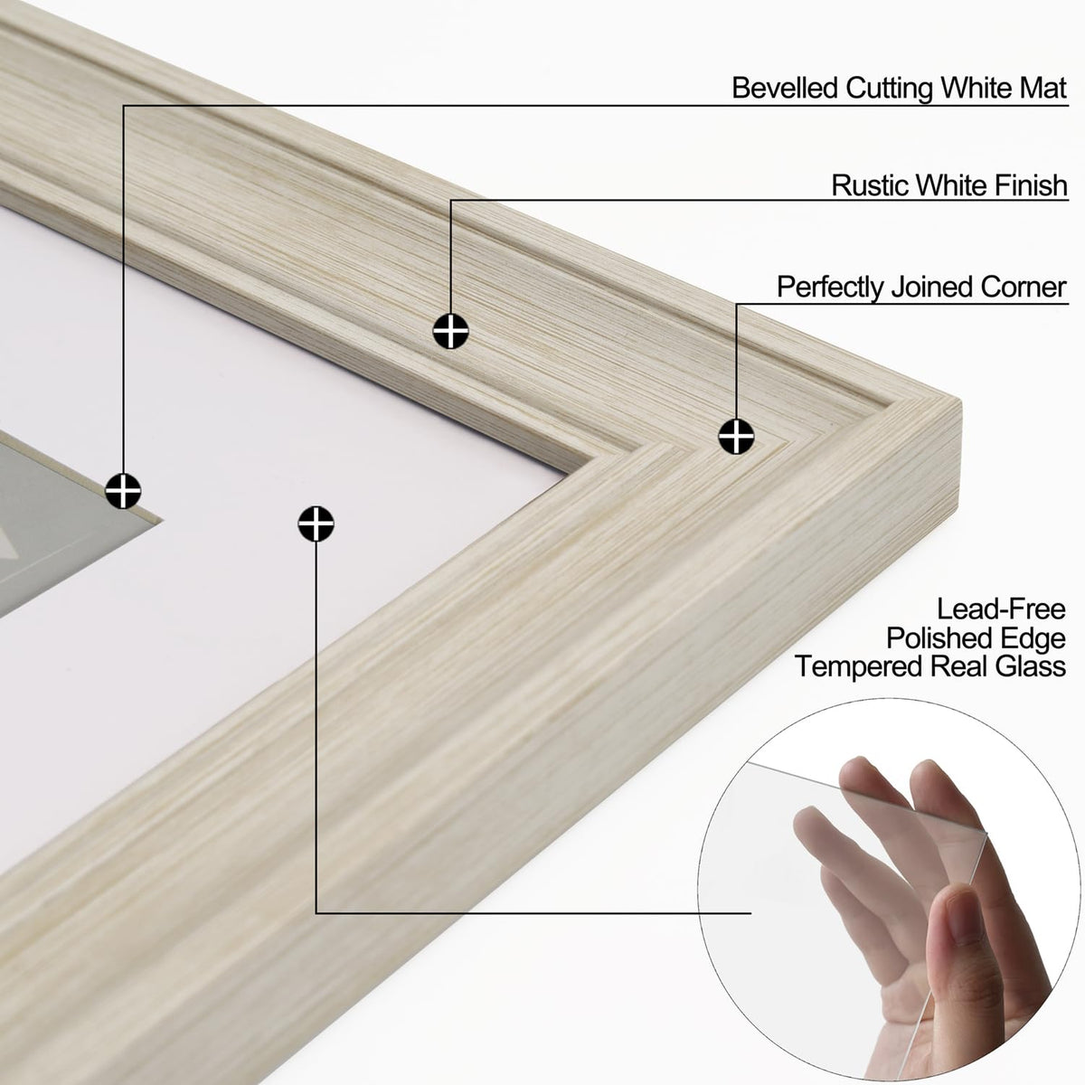 Yaetm 8x10 Picture Frame Matted to 5x7 Set of 4, 1.4 Wide Molding & Rustic White Photo Frames 8 x 10 with Tempered Glass, Dis