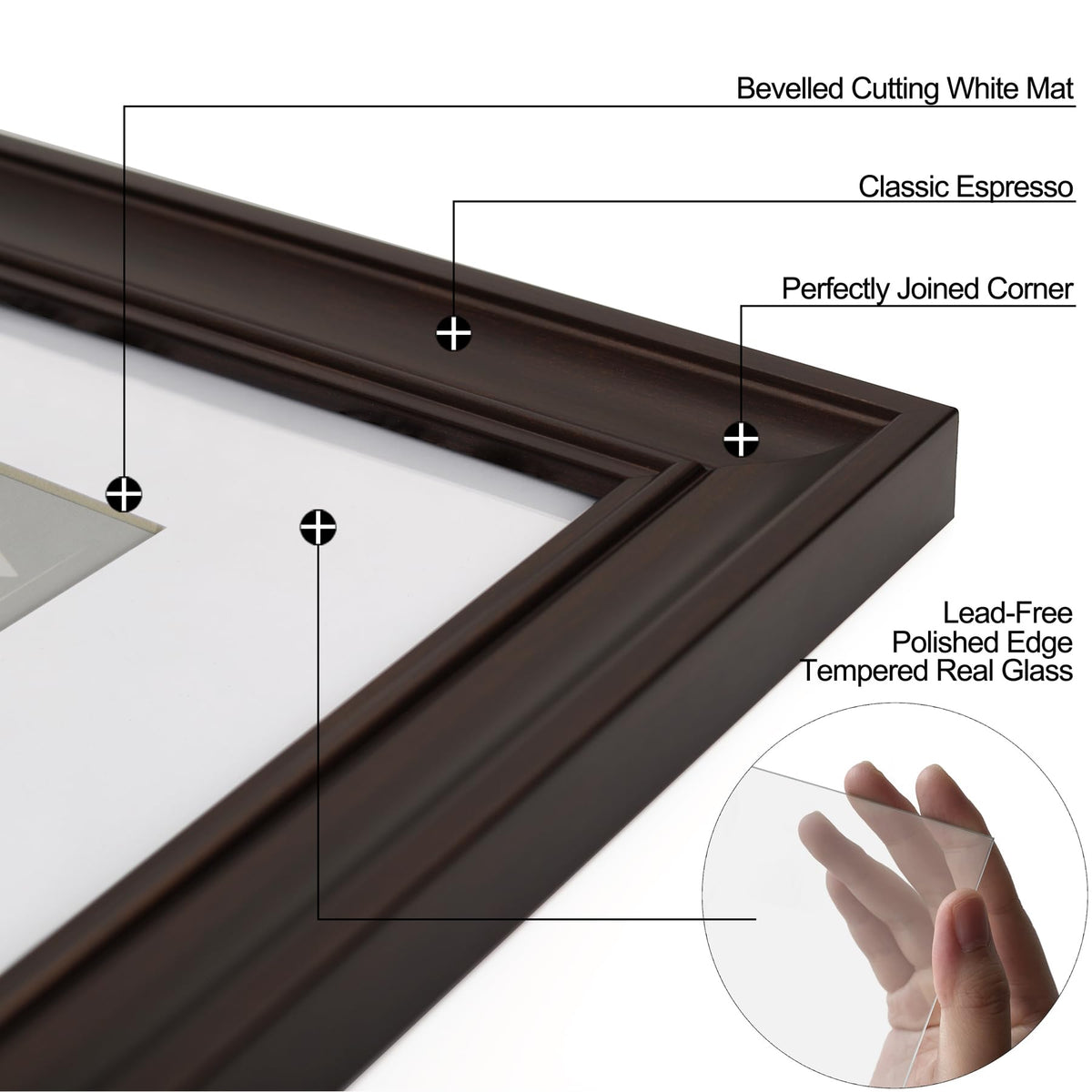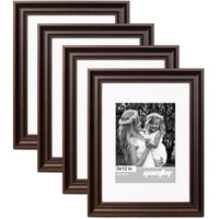 Yaetm 9x12 Picture Frame Matted to 6x8 Set of 4, 1.4 Wide Molding & Dark Brown Photo Frames 9 x 12 with Tempered Glass, Displ