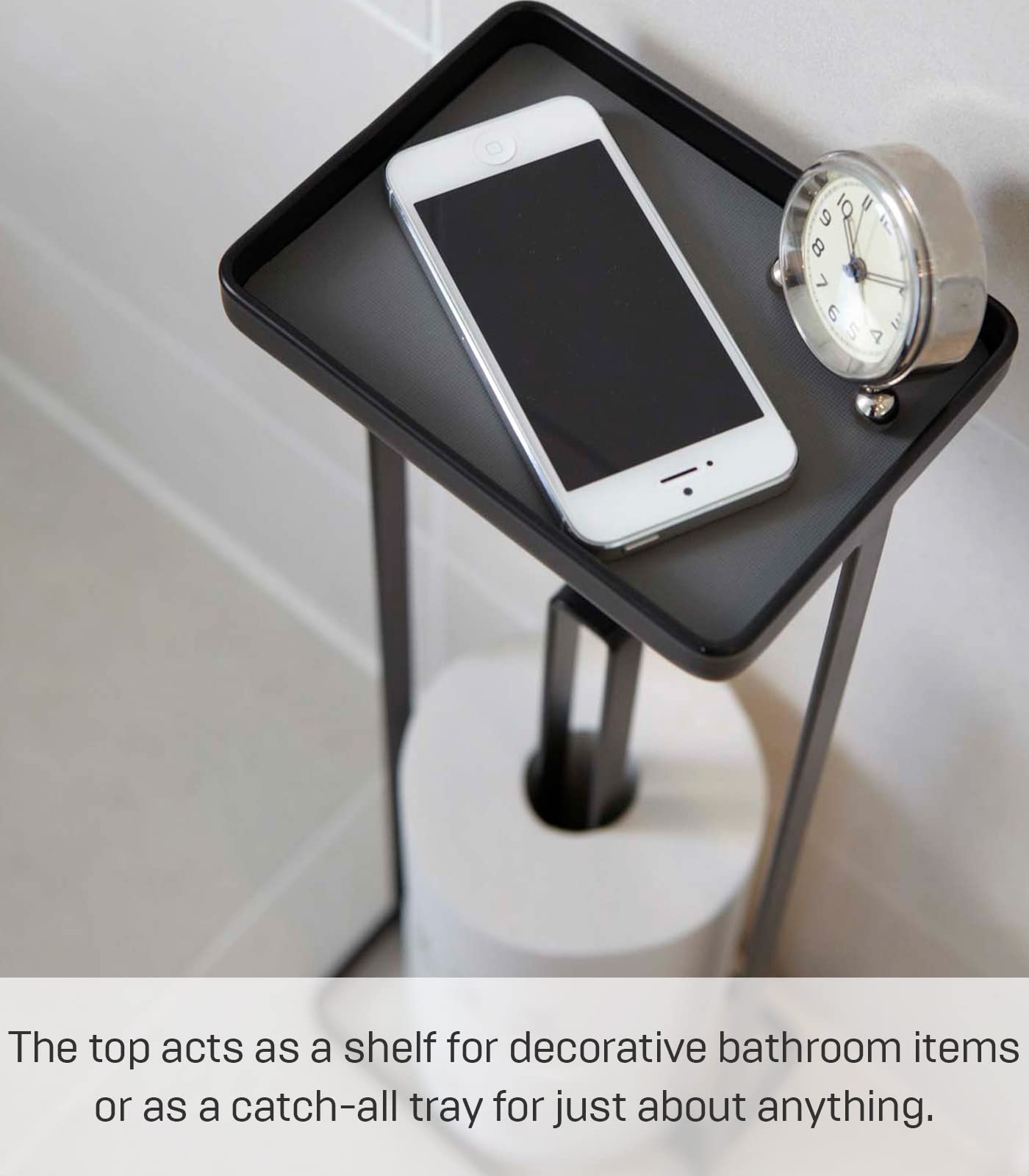 Yamazaki Home Roll Stand With Tray | Steel | Toilet Paper Stocker, One Size, Black