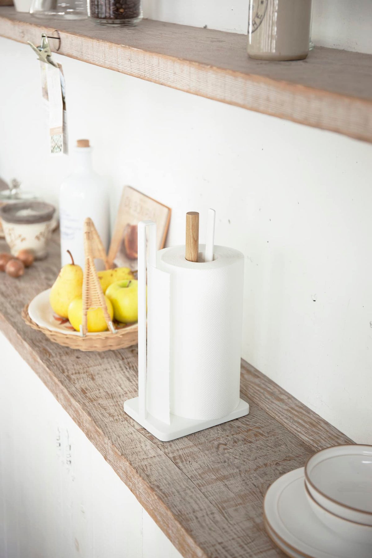 Yamazaki Home Tosca One-Handed Tear Paper Towel Holder - Kitchen Storage Rack - Steel + Wood