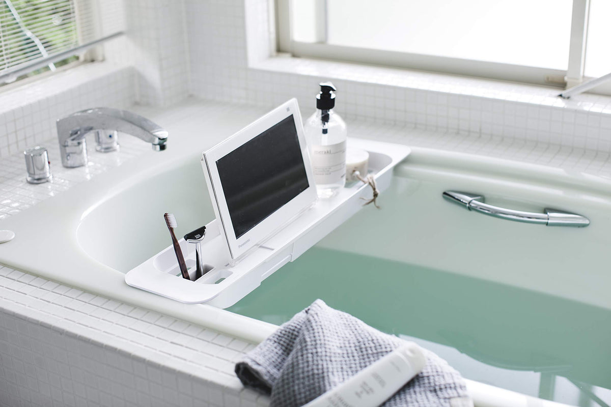 Yamazaki Home Tower Expandable Bathtub Caddy - Bathroom Tray Table Holder., White