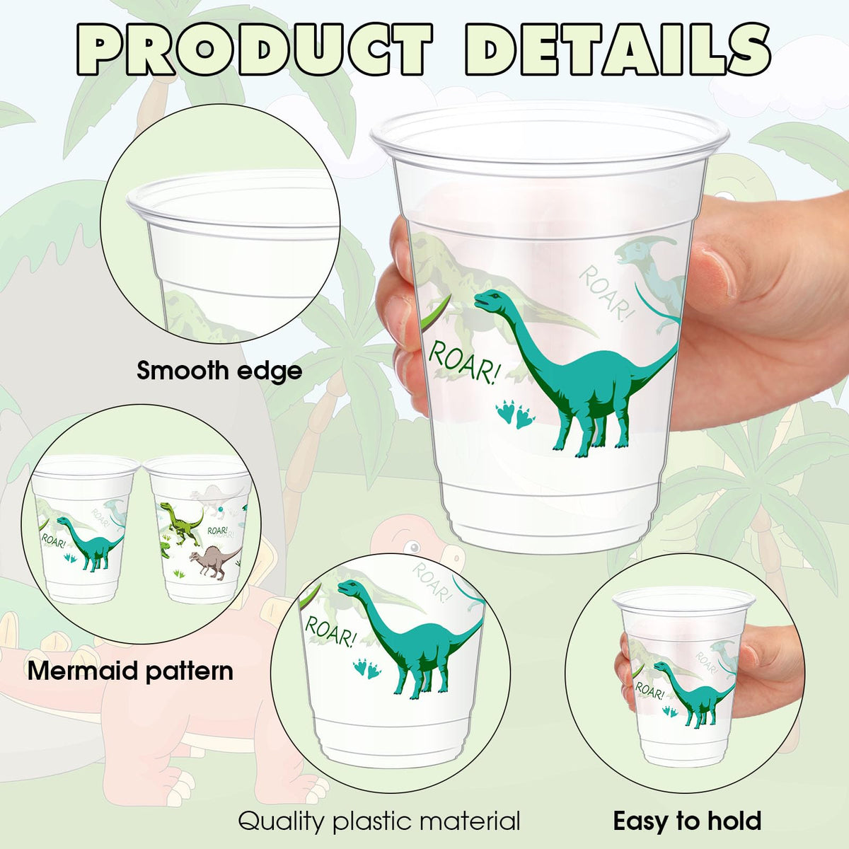- Q: Do the cups feature any designs? A: Yes, the cups feature vibrant dinosaur designs that add a fun and thematic touch to your party decor.