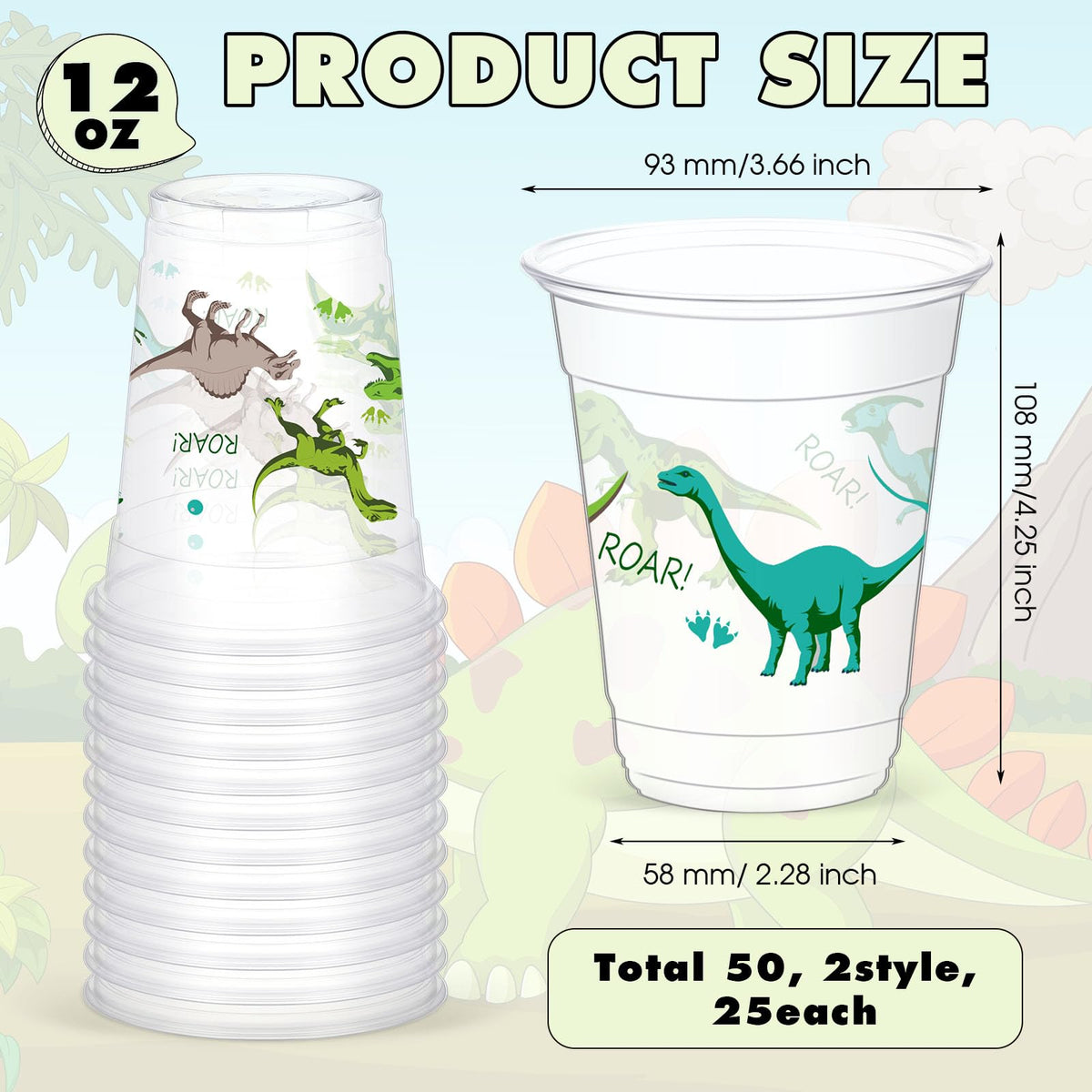 - Q: What is the capacity of each dinosaur cup? A: Each dinosaur cup has a capacity of 12 ounces, making them perfect for serving beverages at any party.