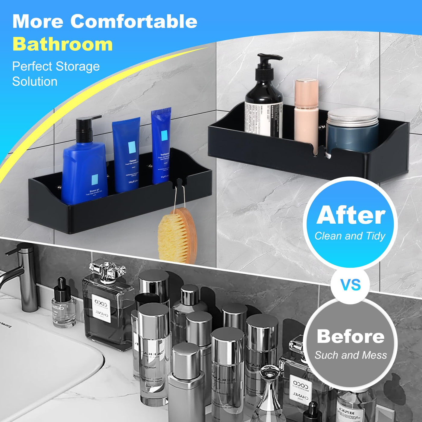 • Q: How do I install the acrylic shower organizer? A: The acrylic shower organizer is easy to install with no drilling required. Simply use the included transparent traceless adhesives on smooth surfaces like tiles, glass, or metal. For uneven surfaces, screw installation is recommended.