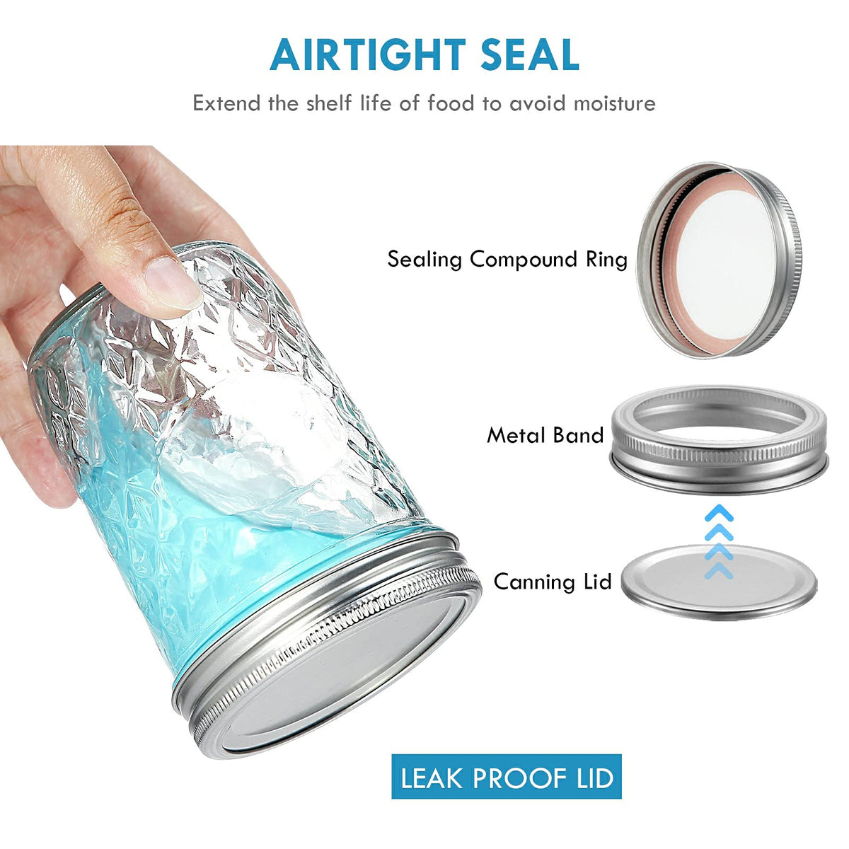 - Q: Do these jars come with lids? A: Yes, each pack includes 12 mason jars with silver metal airtight lids and bands.