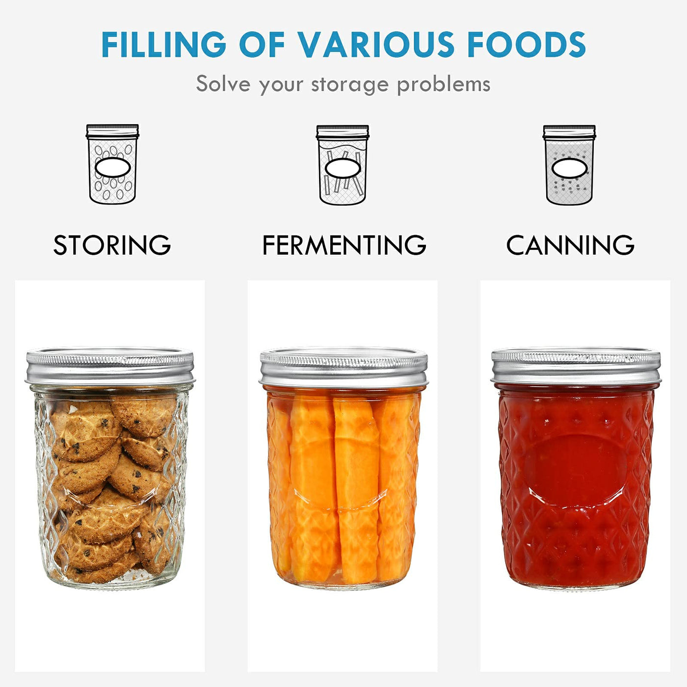 - Q: Can I use these jars for non-food items? A: Yes, these jars can also be used to store non-food items such as buttons, beads, and essential oils.