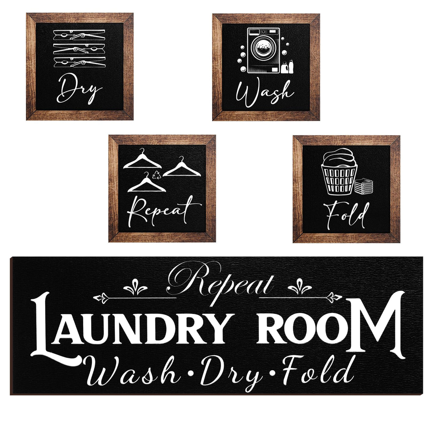 Yerliker Set of 5 Laundry Room Decor for Wall Laundry Room Sign Farmhouse Wooden 4.7 x 4.7 Inch Wash Dry Fold Repeat Signs Rusti