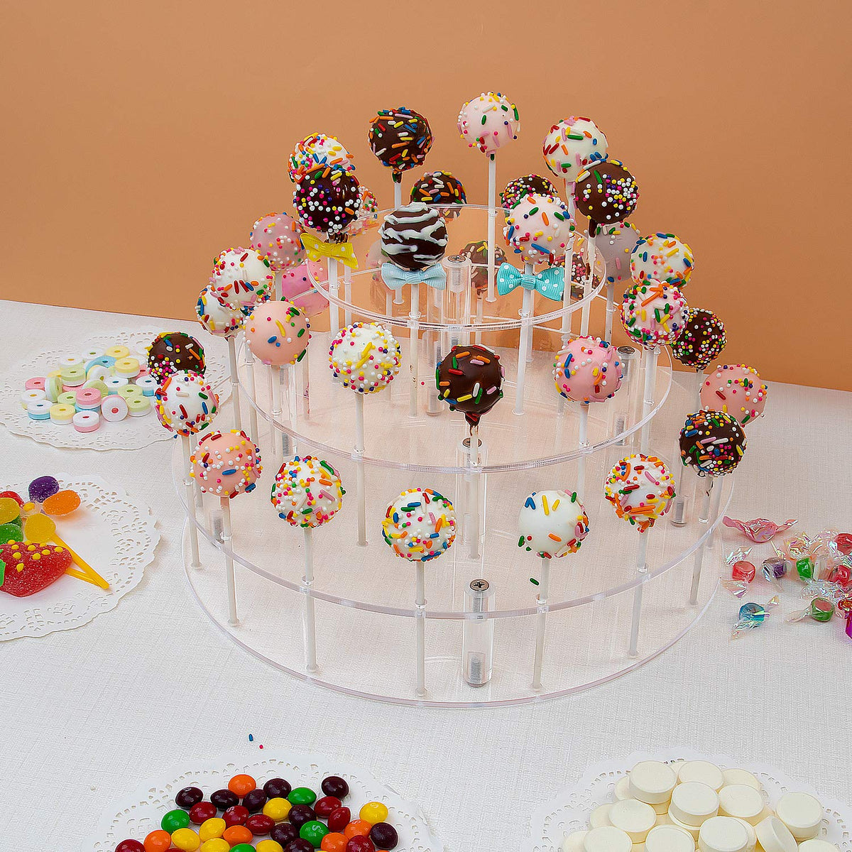 • Q: What material is the cake pop display stand made from? A: The display stand is made from 4MM premium acrylic material, ensuring durability and a bright appearance.
