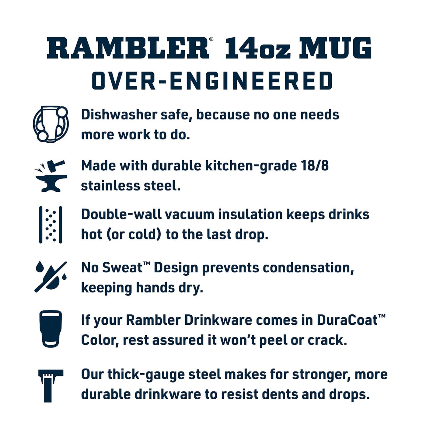 - Q: Does the YETI Rambler Stackable Mug keep drinks hot or cold? A: Yes, the double-wall vacuum insulation helps keep cold drinks cold and hot drinks hot until the last sip.