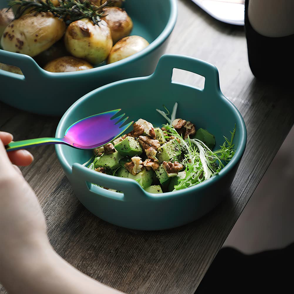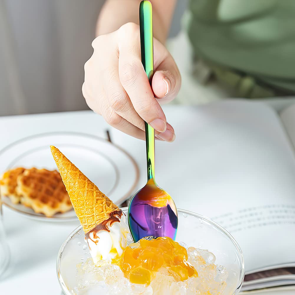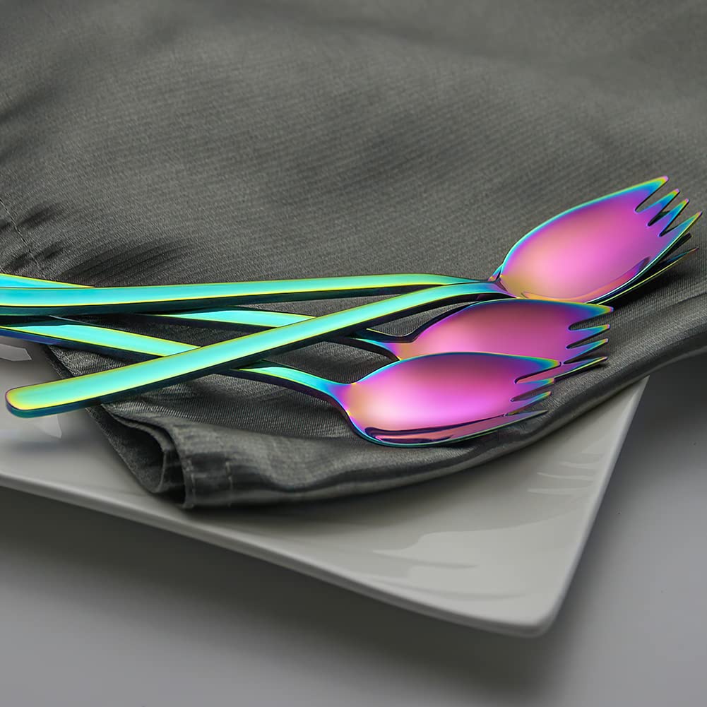 Yfwood Sporks, 4-Pack 18/10 Stainless Steel Sporks 7.4 Inches Long Handle Dessert Spoons Ice Cream Spoons Salad Forks Flatware S