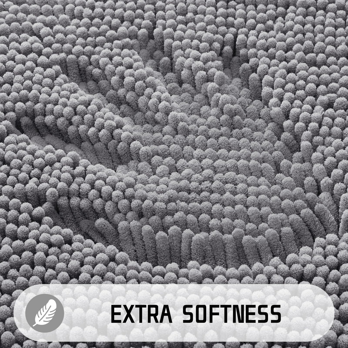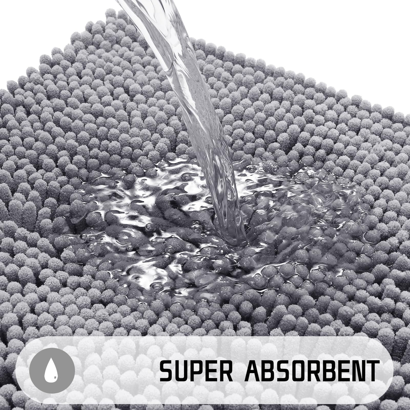 Yimobra Chenille Bathroom Rug Microfiber Luxury 47.2 X 24 Inches Bathmats Washable Soft Shaggy Bathroom Shower Rug Super Absorbent & Thick Durable Non-Slip Bath Mats for Bathroom Grey