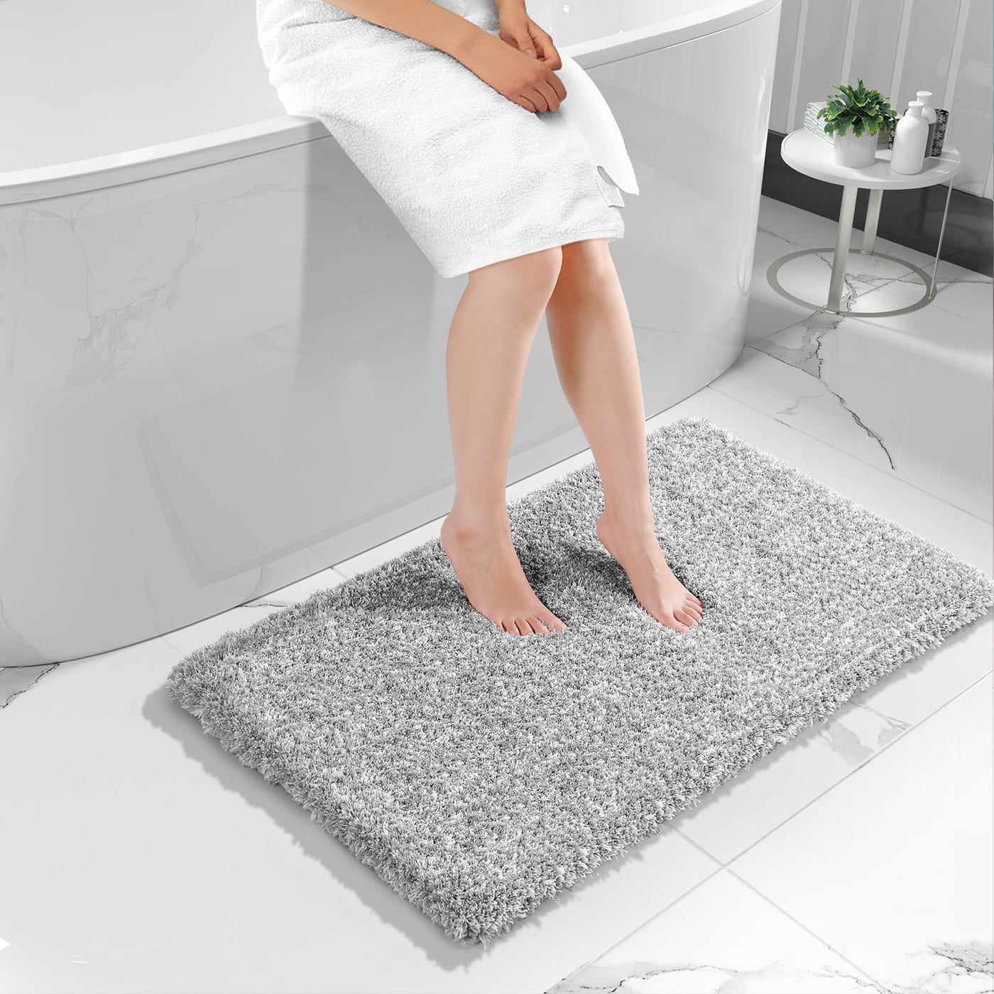 - Q: What colors are available for this bathroom rug? A: The Yimobra Luxury Bathroom Rug comes in a variety of colors, including light gray and white, allowing you to choose one that fits your decor.