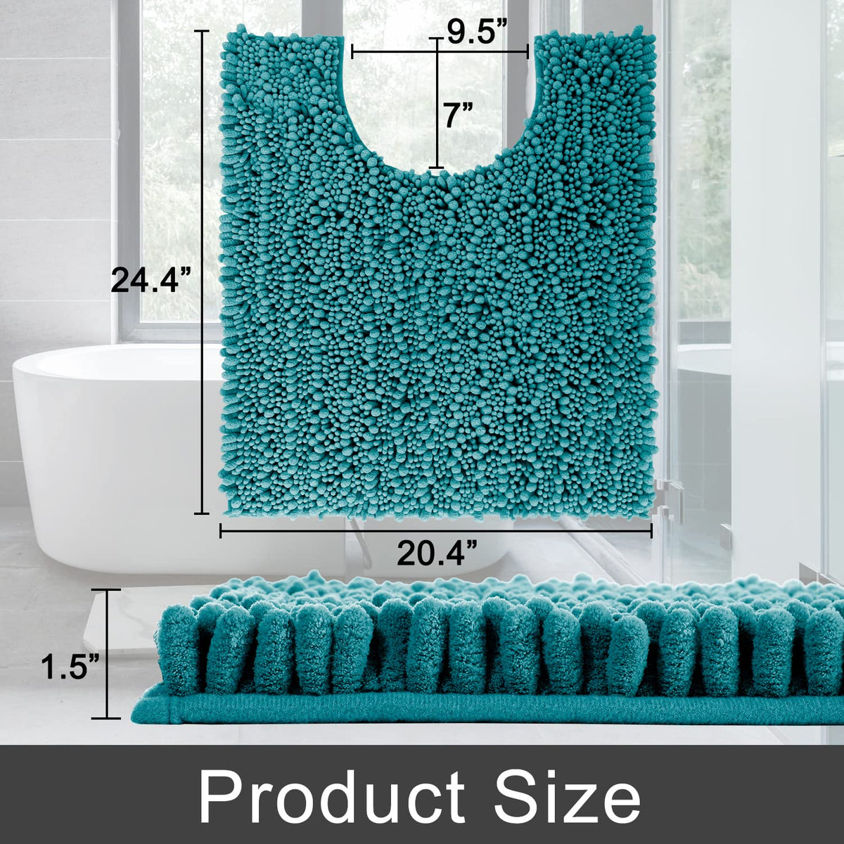 Yimobra Luxury Shaggy Toilet Bath Mat U-Shaped Contour Rugs for Bathroom Soft Maximum Absorbent Dry Quickly Non-Slip Machine-Washable Teal Blue