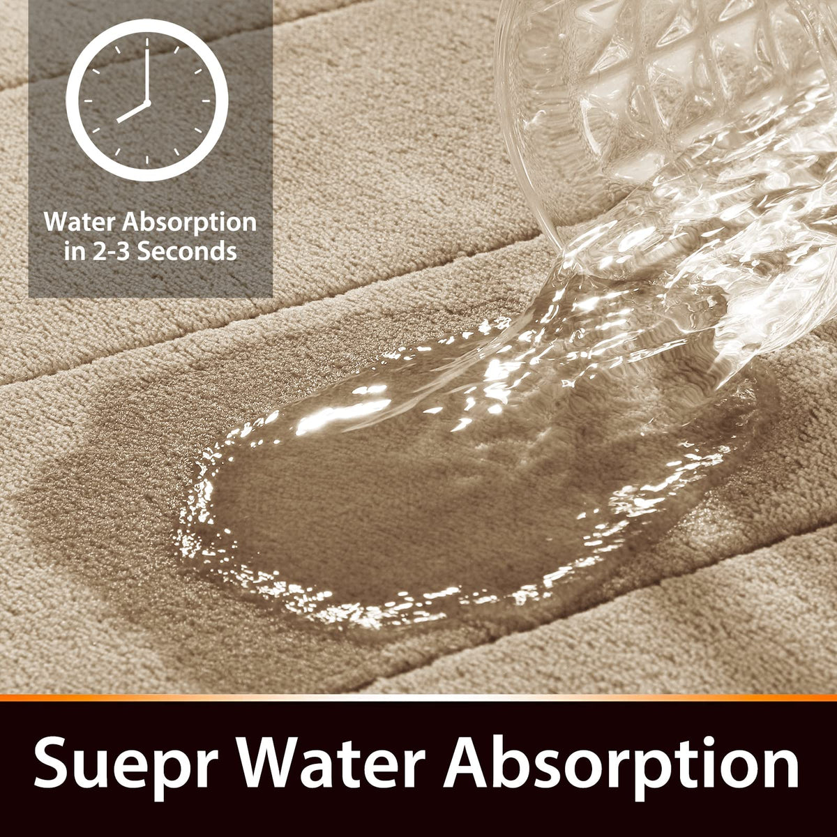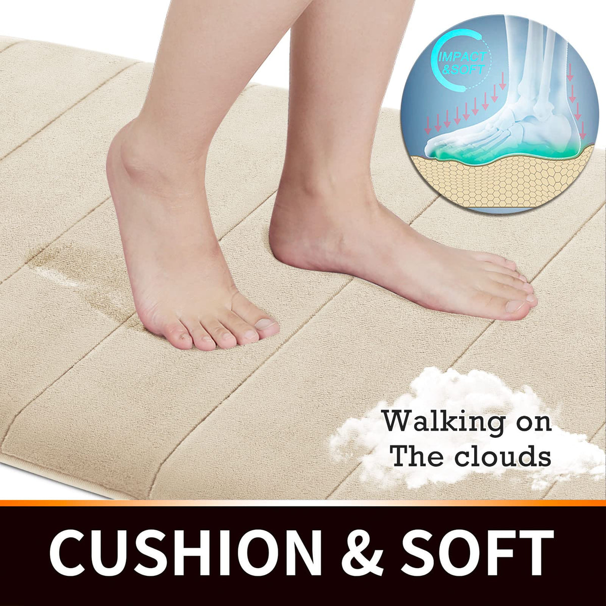 Yimobra Memory Foam Bath Mat Comfortable Soft Maximum Absorbent Machine Wash Non-Slip Thick Easier to Dry for Bathroom Floor Rug (24 x 17 Inch Beige)