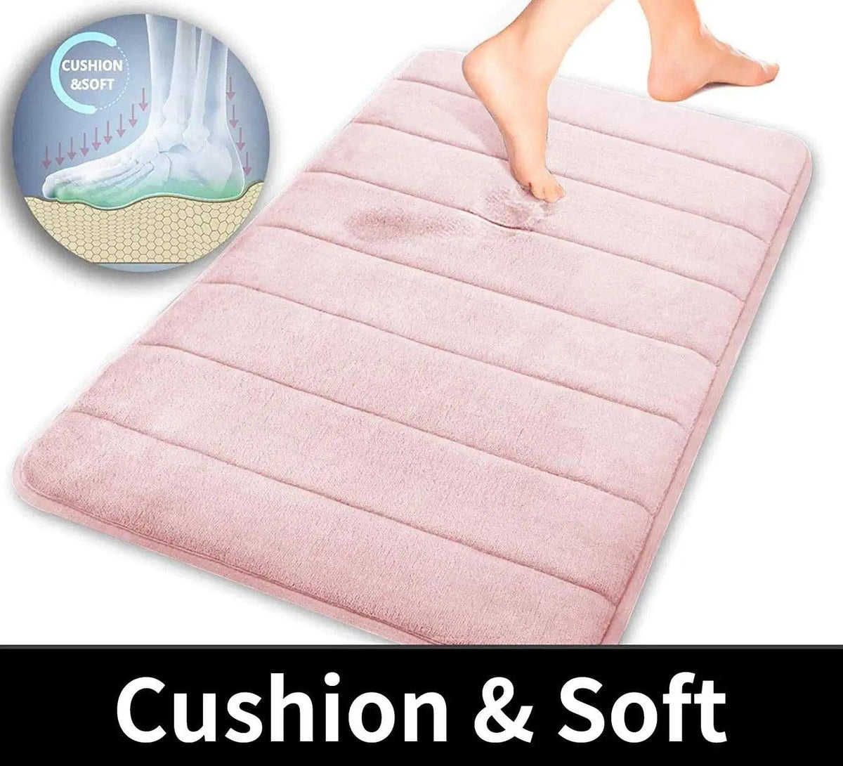 Yimobra Memory Foam Bath Mat Large Size 24 x 17 Inches Soft and Comfortable Super Water Absorption Non-Slip Thick Machine Wash Easier to Dry for Bathroom Floor Rug Soft Pink