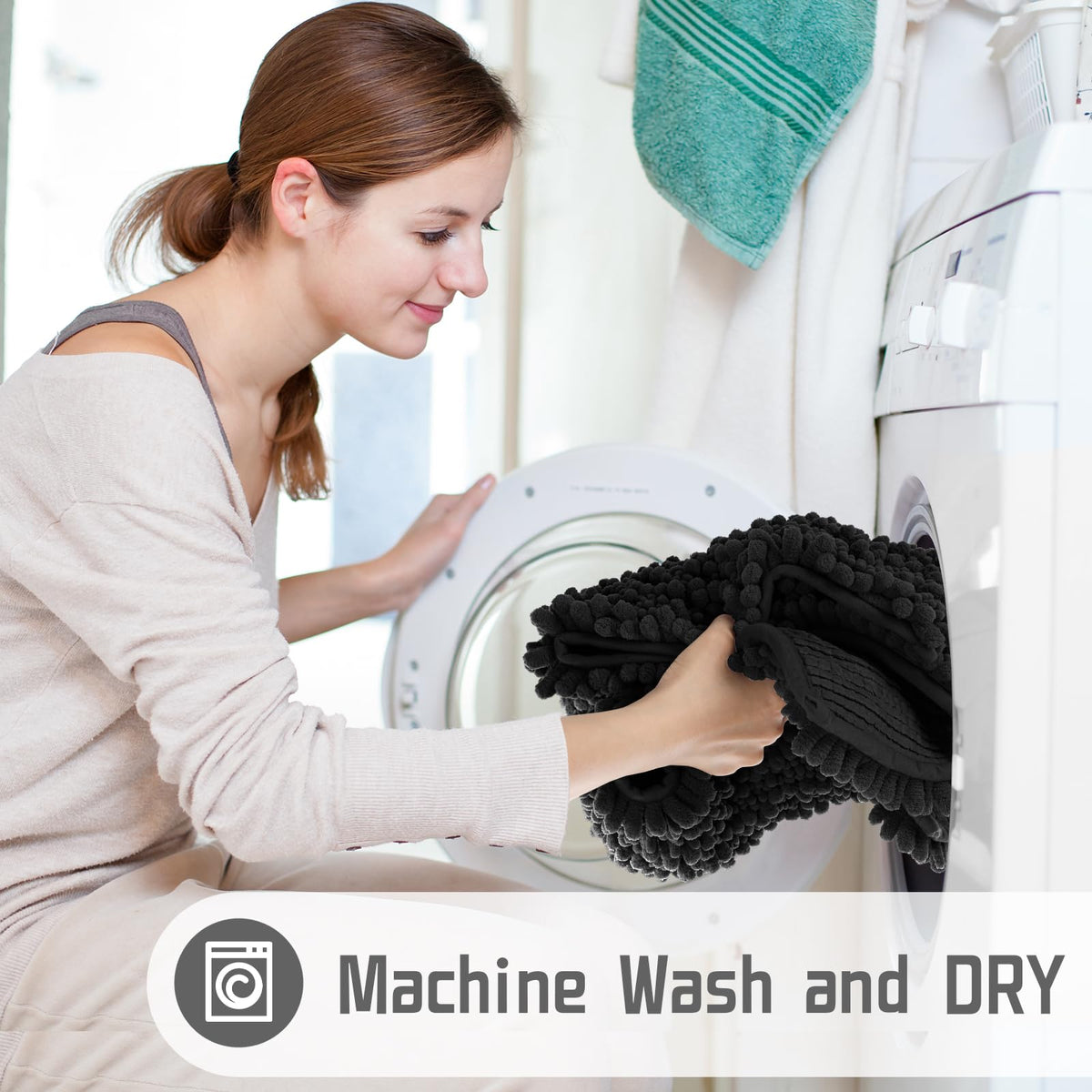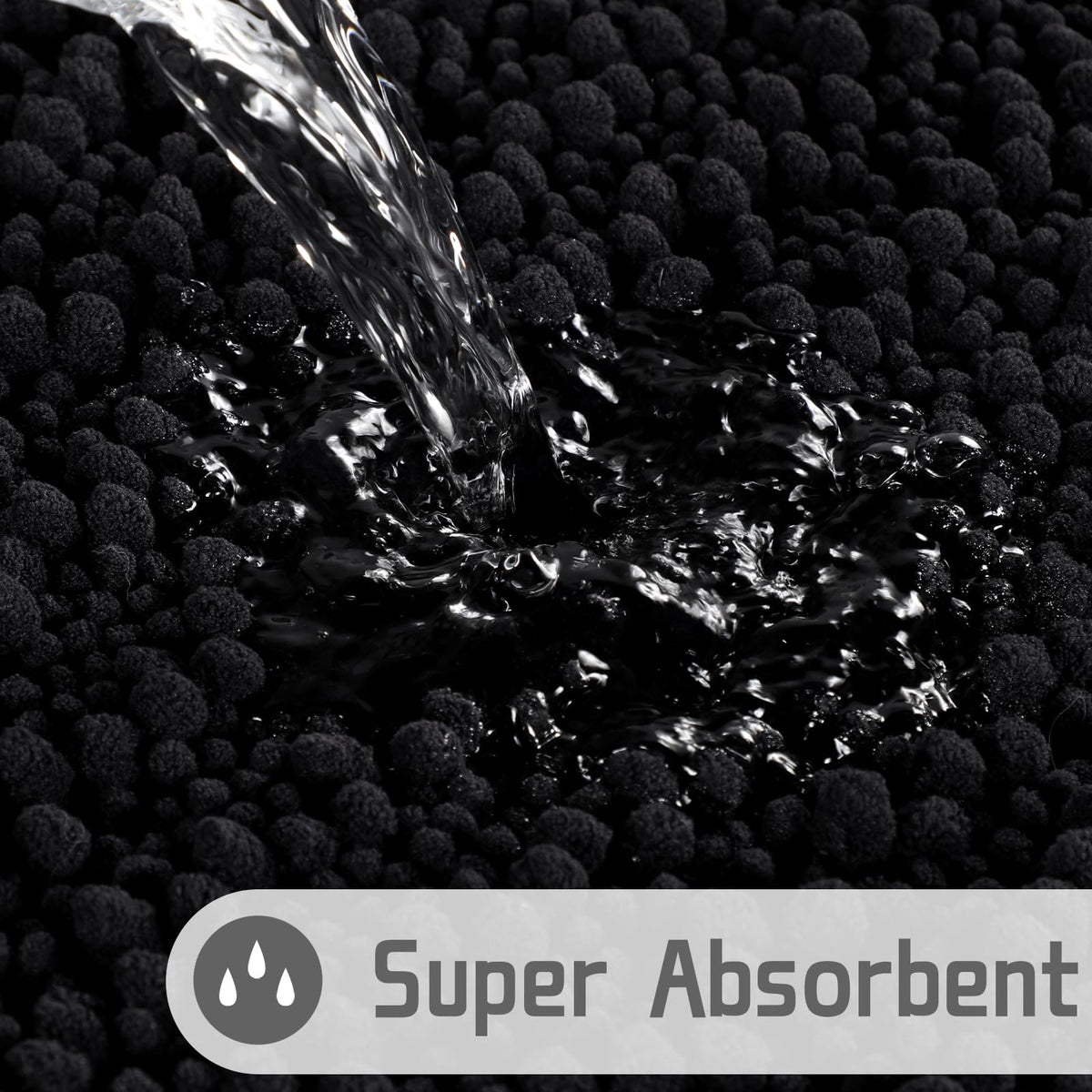 Yimobra Original Luxury Chenille Bath Mat 55.1 x 24 Inches Soft Shaggy and Comfortable Large Size Super Absorbent and Thick Non-Slip Machine Washable Perfect for Bathroom Black