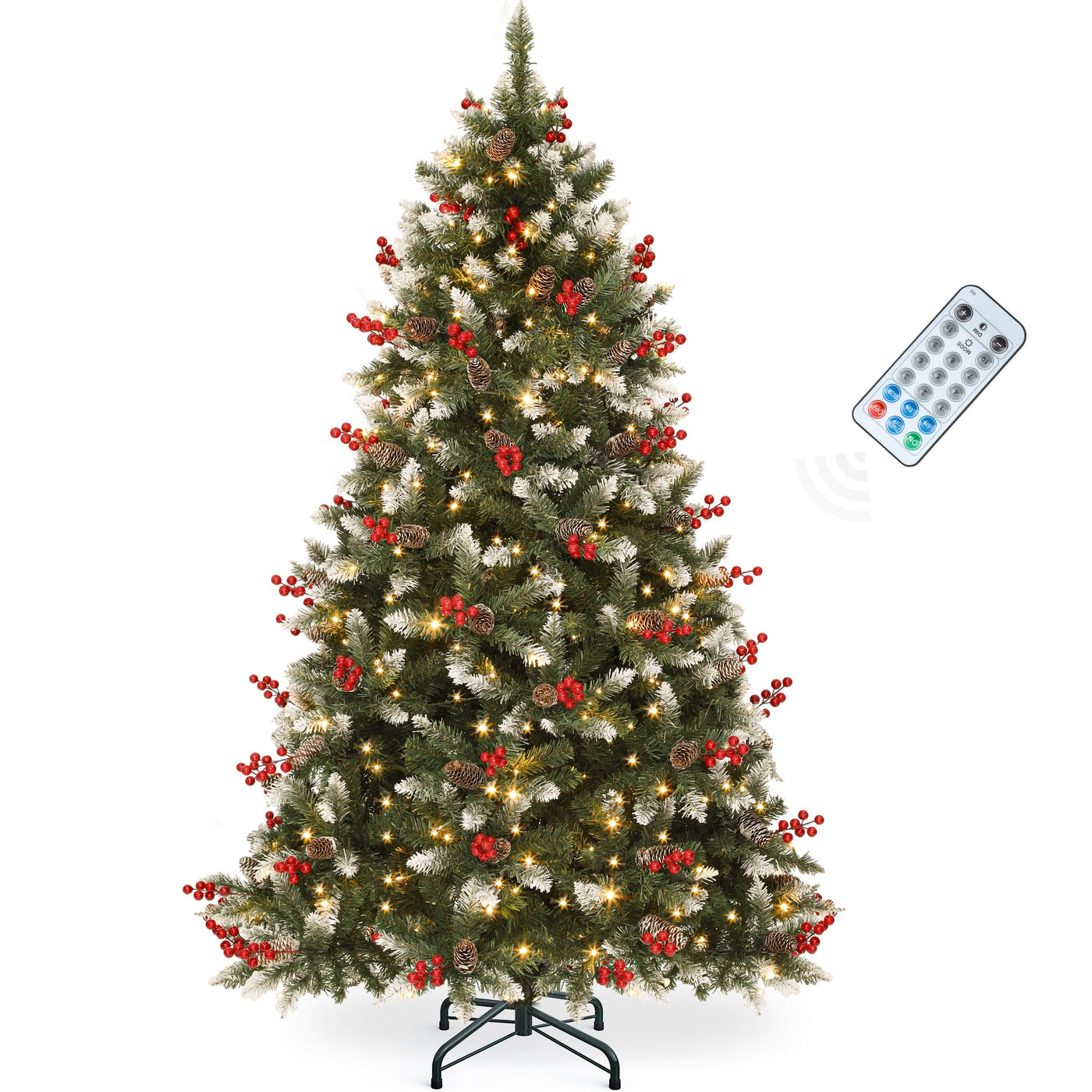 YITAHOME Prelit Pre-Decorated Pine Christmas Tree 7.5FT with Remote, Artificial Hinged Xmas Tree w/ 1398 Flocked Frosted Tips, 5