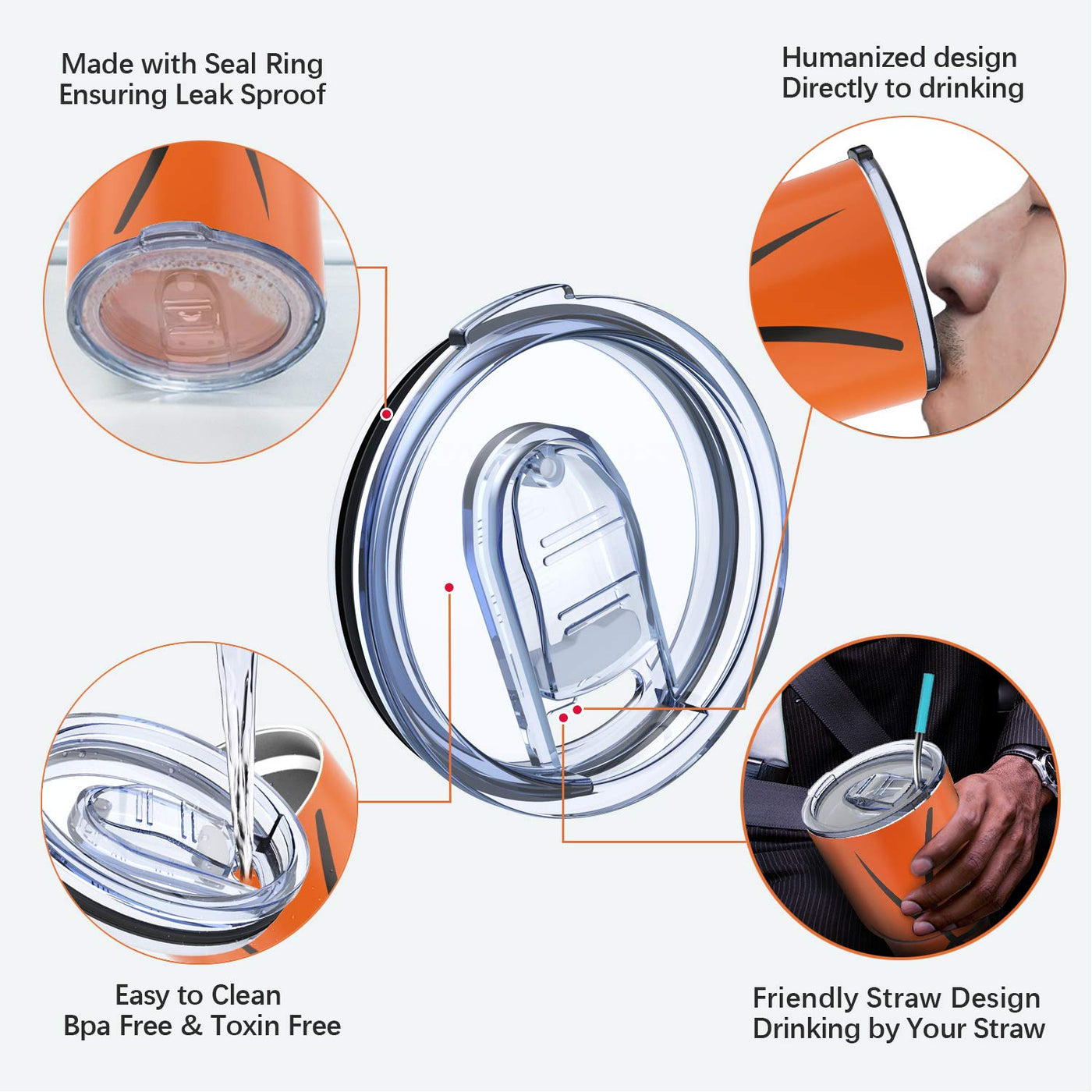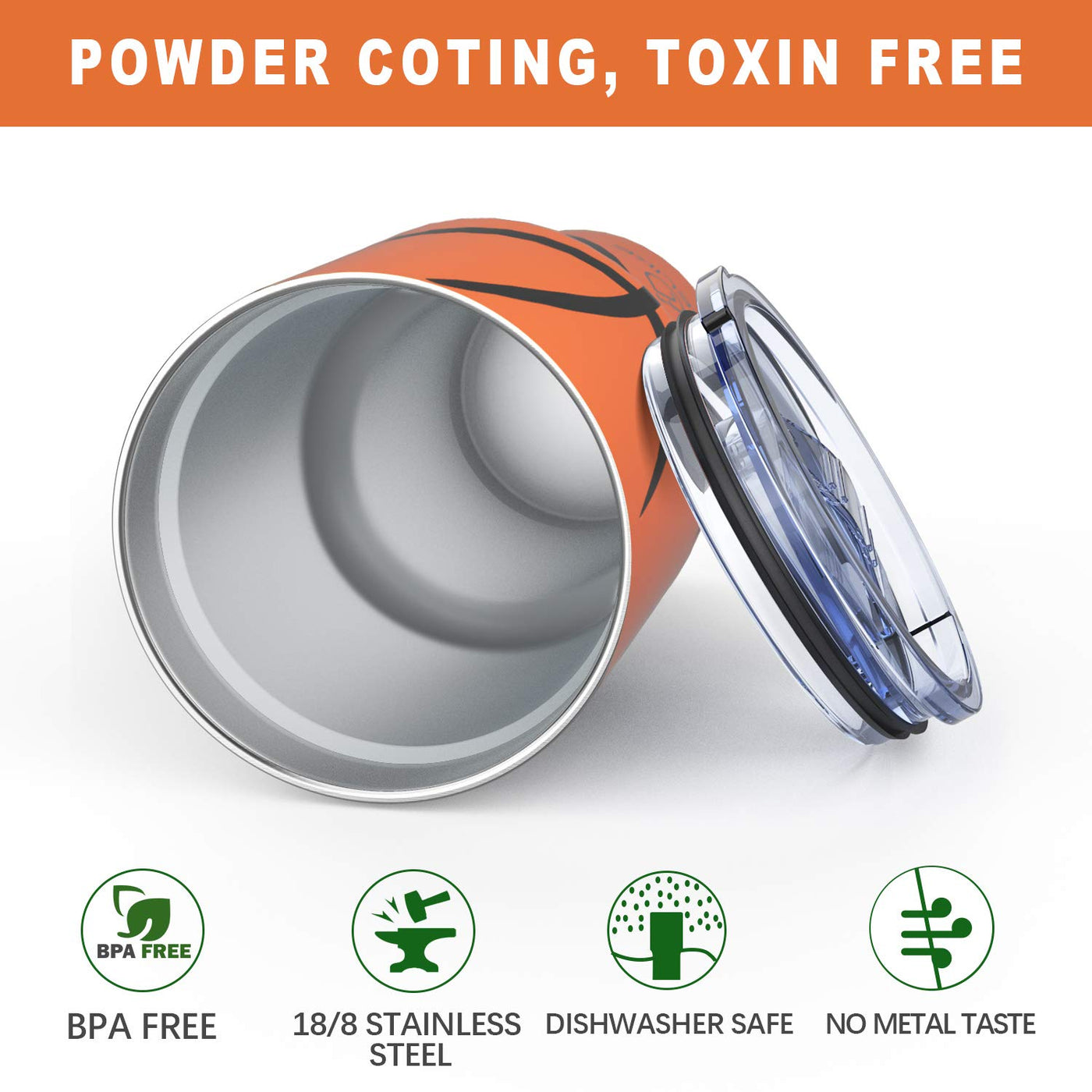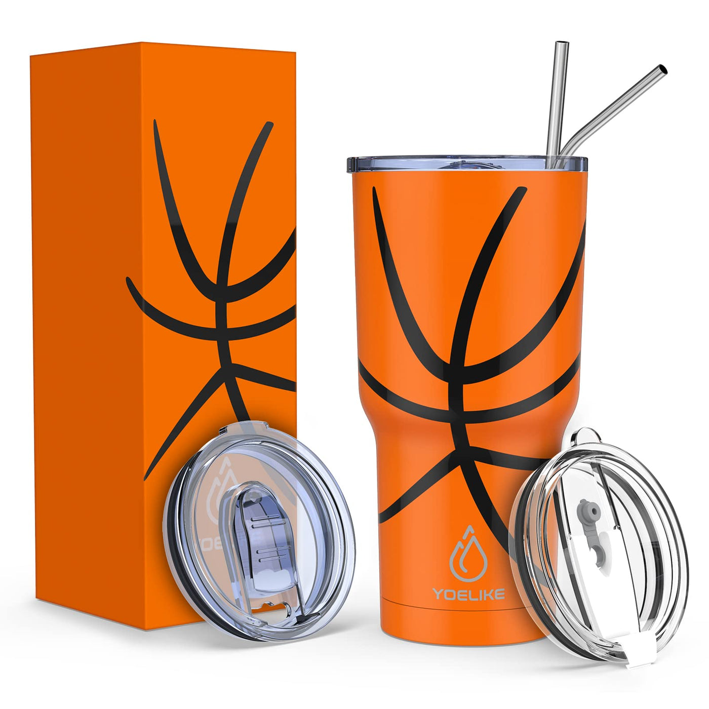 Yoelike Basketball Tumbler 30 Oz Stainless Steel Double Wall Vacuum Insulated Cup With Straws, Splash Proof Lids, Straw Clean Br