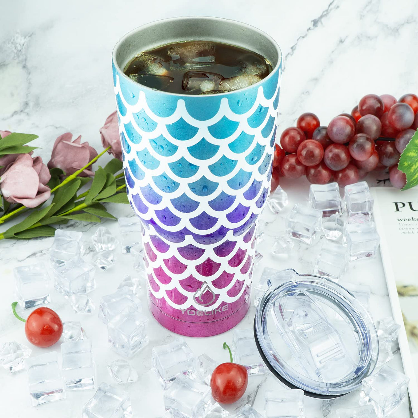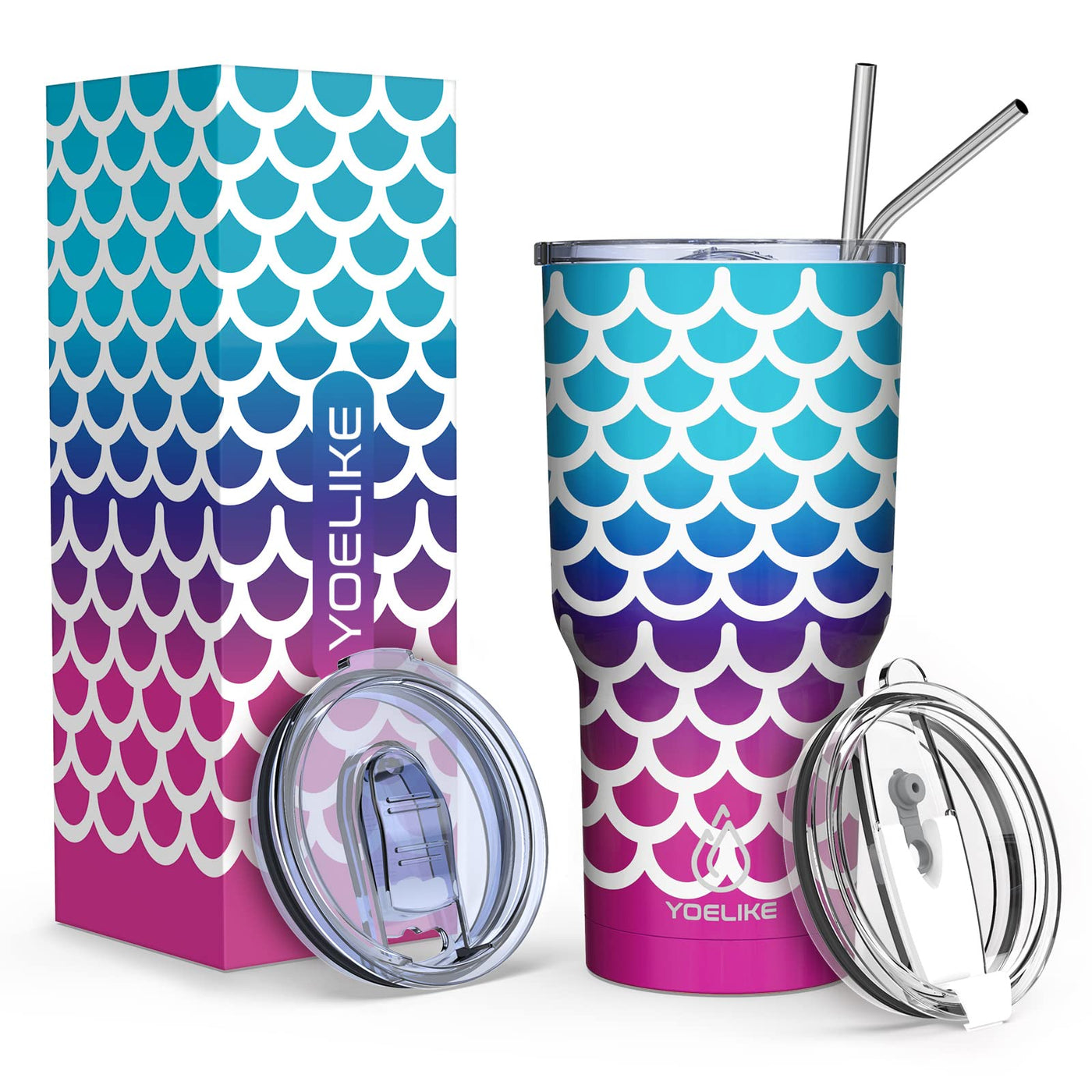 Yoelike Mermaid 30 Oz Stainless Steel Double Wall Vacuum Insulated Tumbler With 2 Straws, 2 Splash Proof Lid, 1 Straw Cleaning B