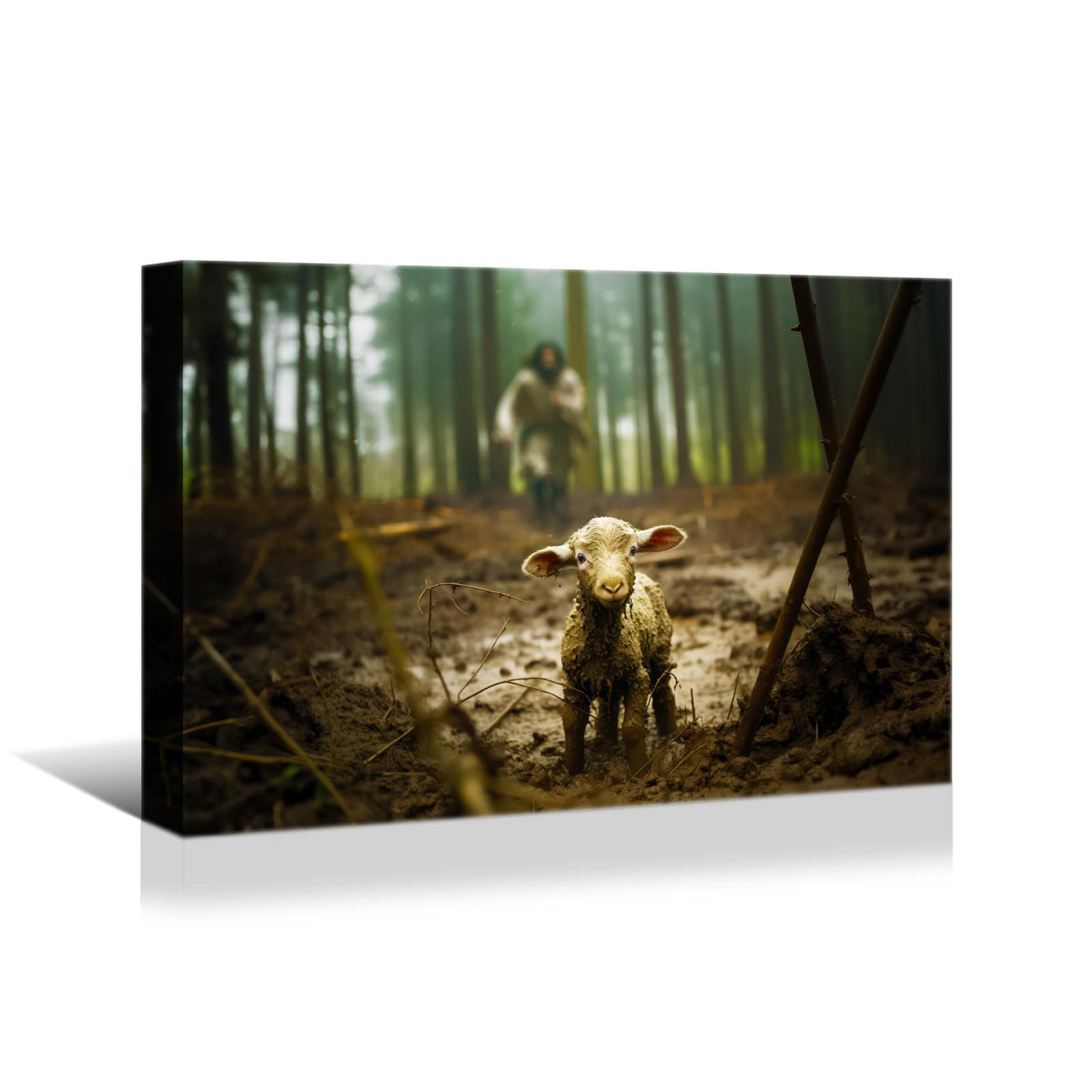 - Q: What themes does the artwork depict? A: The artwork depicts the Christian themes of Jesus running after the lost lamb, symbolizing redemption and love.