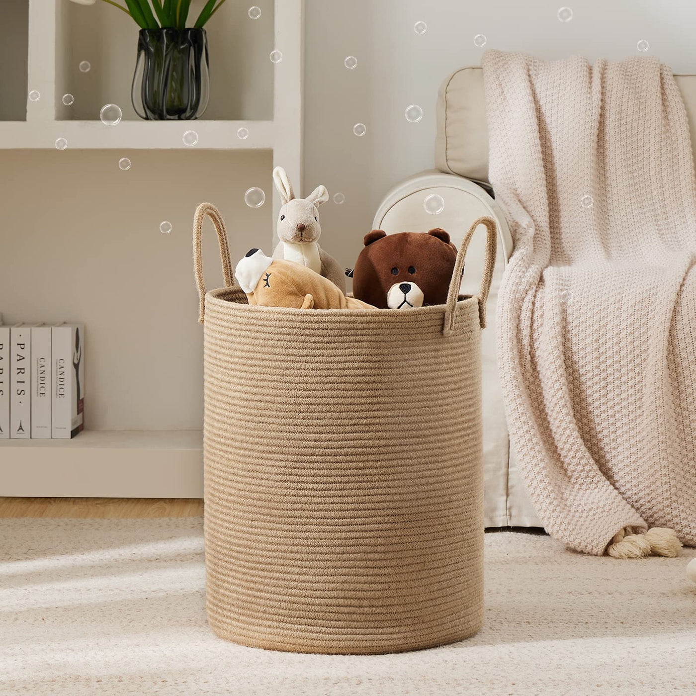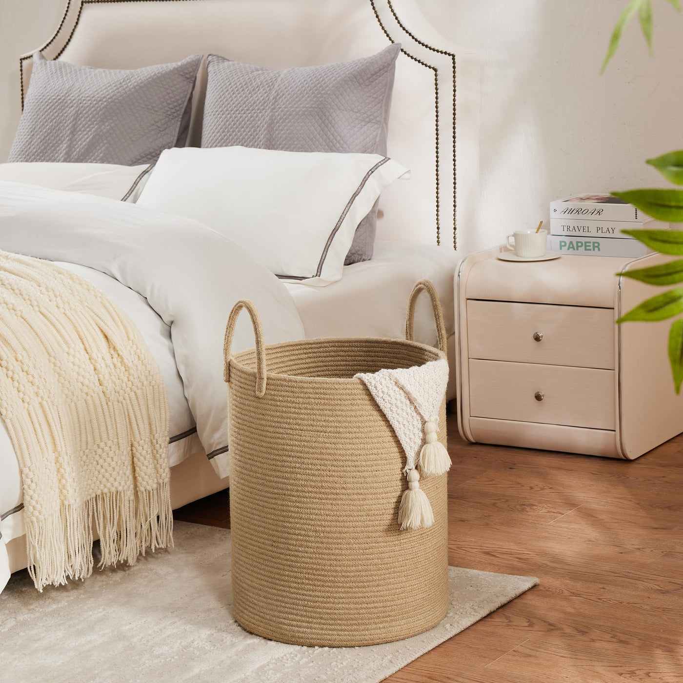 Youdenova Cotton Laundry Hamper, 72L - Woven Collapsible Basket - Jute Brown