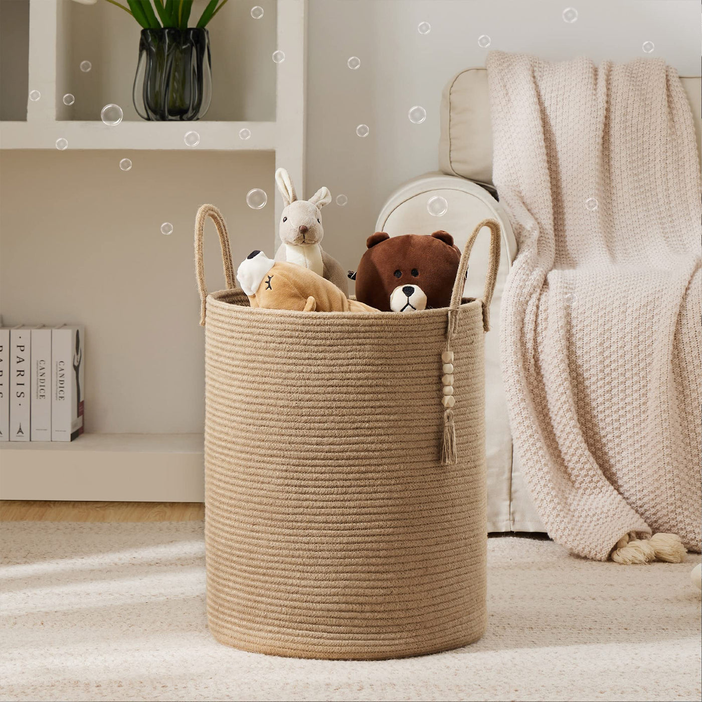 Youdenova Jute Rope Laundry Hamper Basket, 58L Tall Woven Collapsible Baskets For Blanket Organizing Clothes Hamper For Laundry