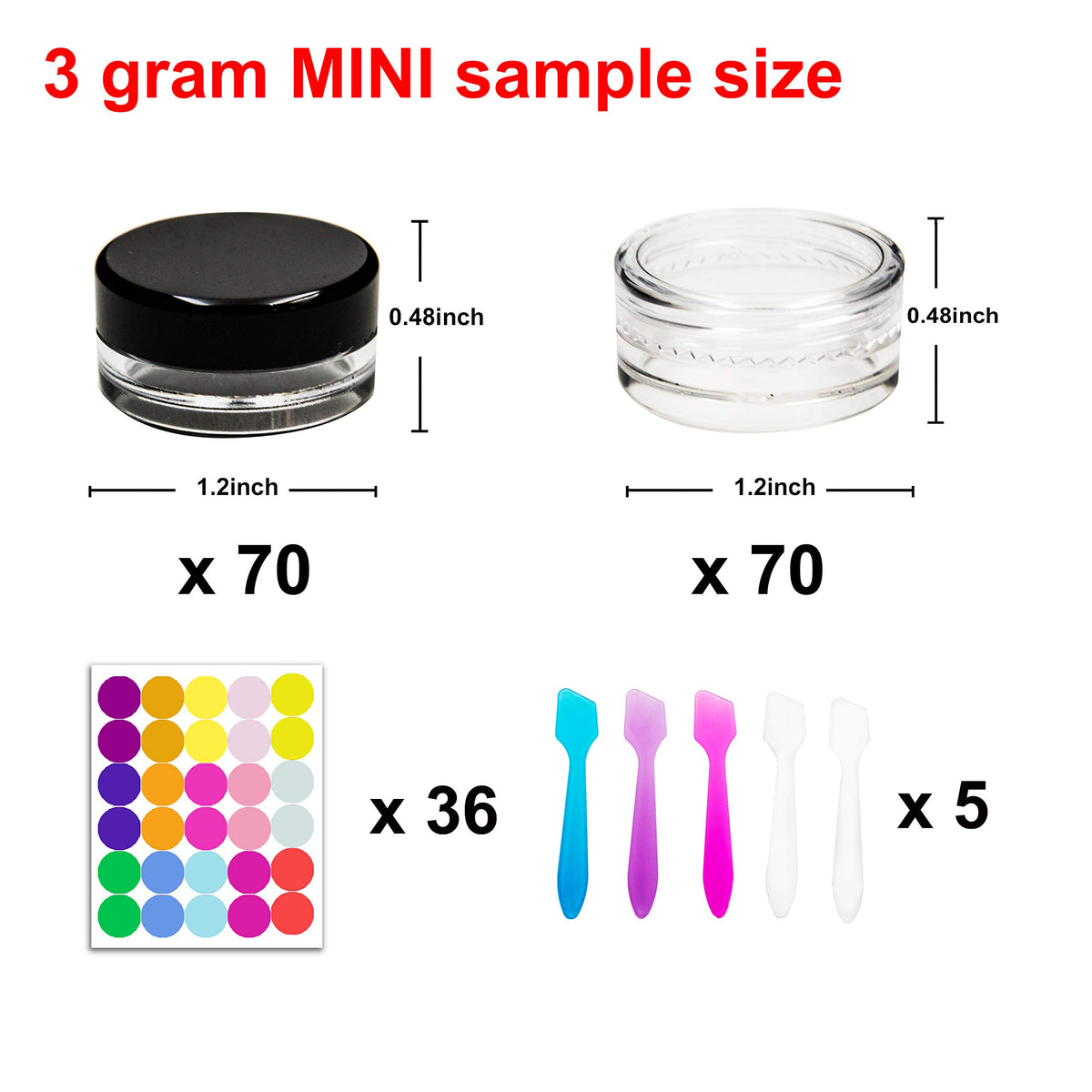- Q: What are the dimensions of each cosmetic container? A: Each cosmetic container holds 3 grams of product, making them compact and travel-friendly.