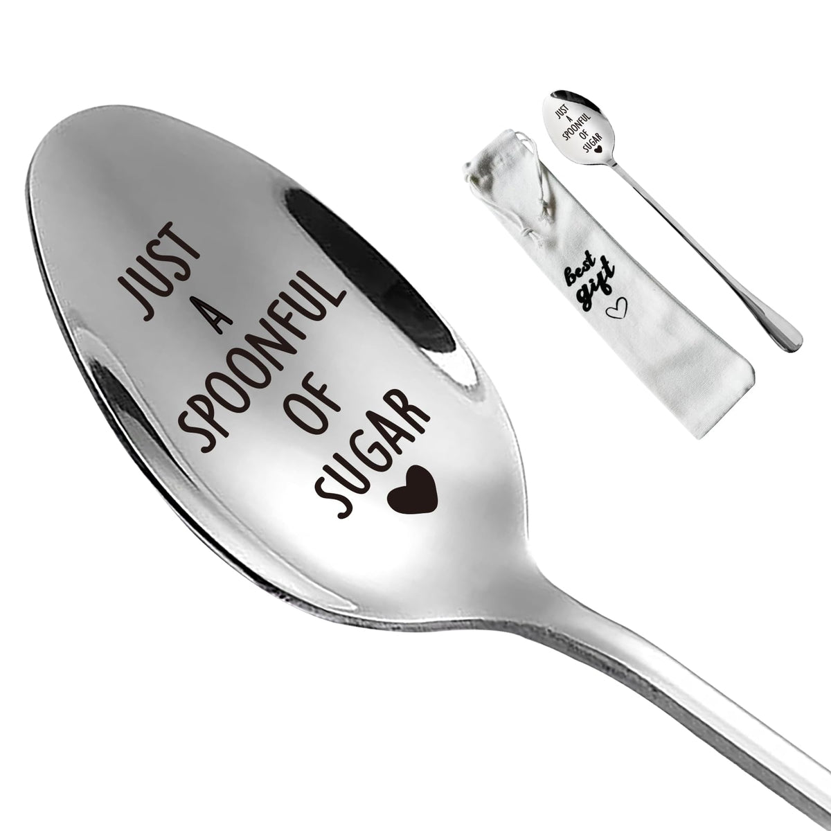 Yrovwenq Just A Spoonful Of Sugar Spoon For Friends Or Dessert Sugar Coffee Lover Funny Birthday Gift