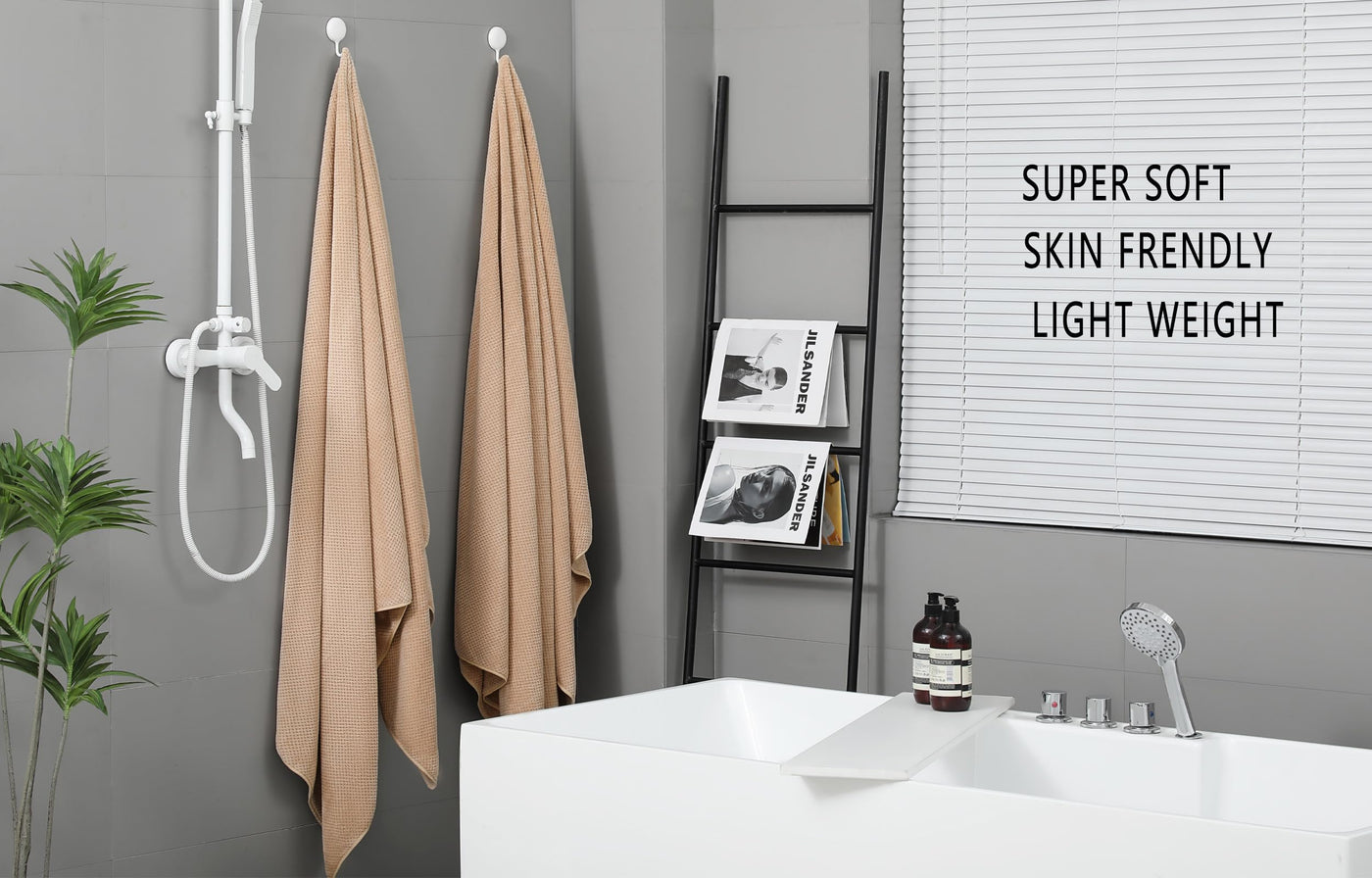 YTYC Towels 39x78 Inch Oversized Bath Sheets Towels for Adults Luxury Bath Towels Extra Large Sets for Bathroom Super Soft Highly Absorbent Microfiber Shower Towels 80% Polyester (Beige 2 Piece)