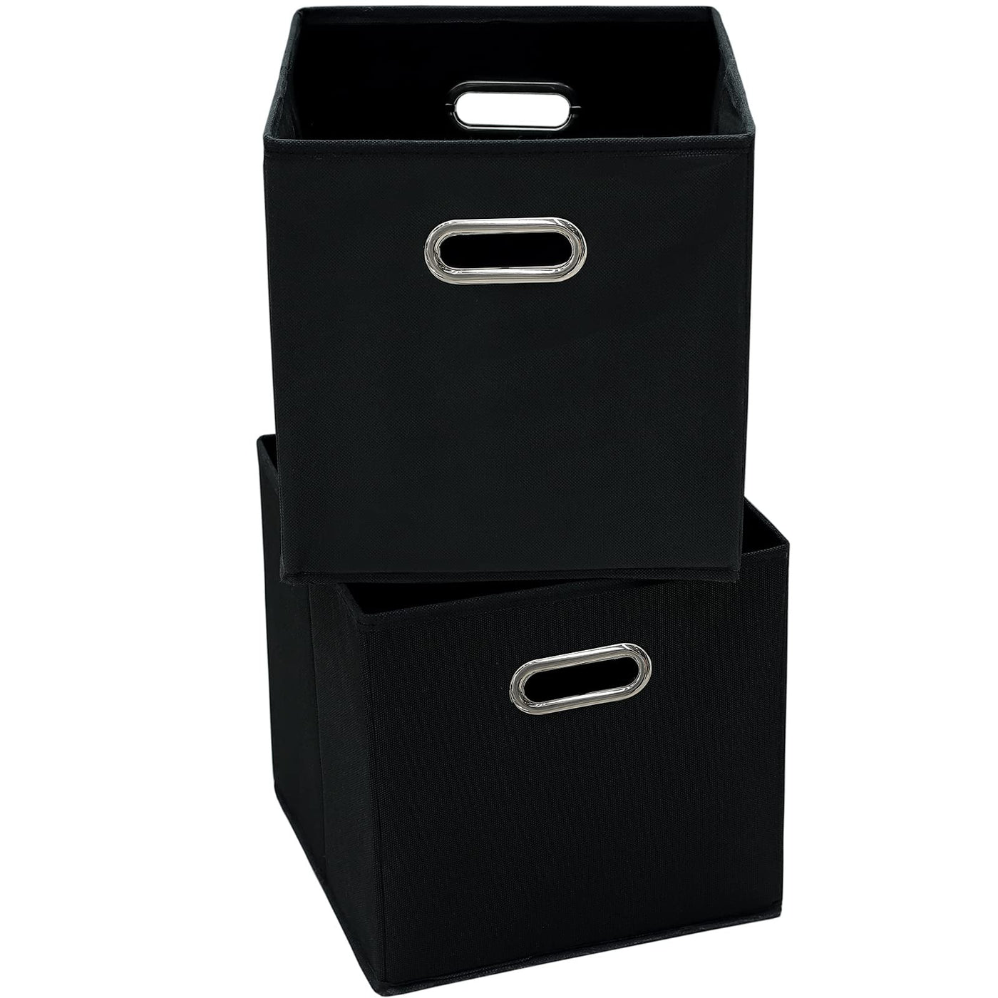 Yunkeeper 11 Inch Foldable Storage Bins ,Black Fabric Cubes Organizer Baskets With Handle For Closet Or Collapsible Box, 11X11X1