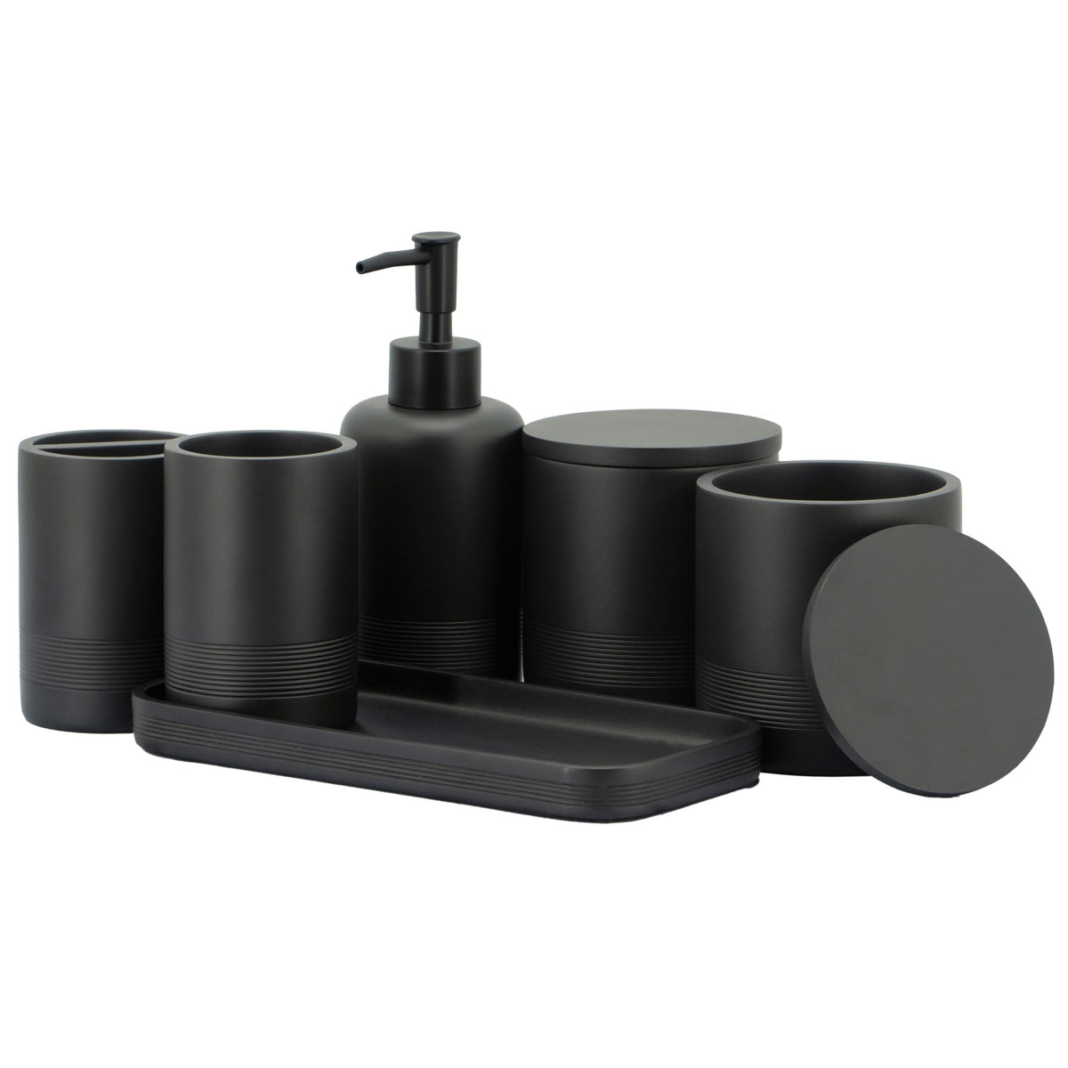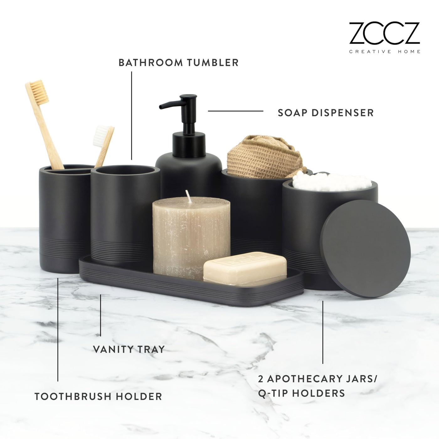 Zccz - Black Matte Bathroom Accessories Set 6 Pcs - Toothbrush Holder, Lotion Soap Dispenser, 2 Qtip Holder Dispenserr, Vanity T