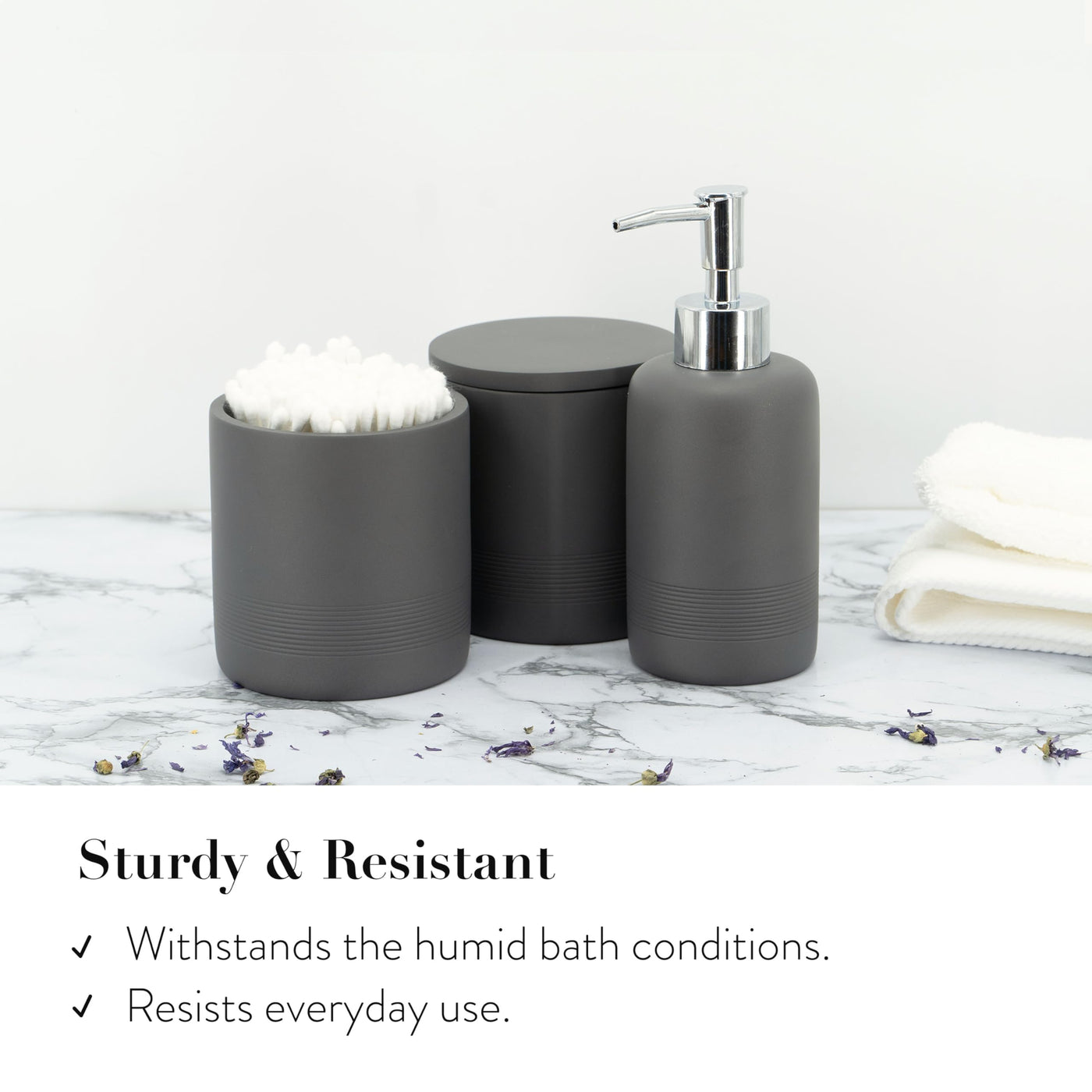 Zccz - Grey Bathroom Accessories Set 6 Pcs - Toothbrush Holder, Lotion Soap Dispenser, 2 Qtip Holder Dispenser, Vanity Tray, Bat