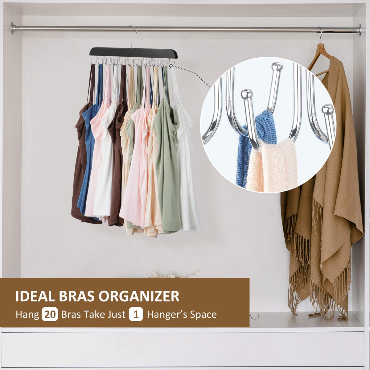 Zedodier Bra Hanger For Closet, 2 Pack Tank Top Hanger 40 Hooks Capacity, Wood Space Saving Hanger Closet Organizers And Storage