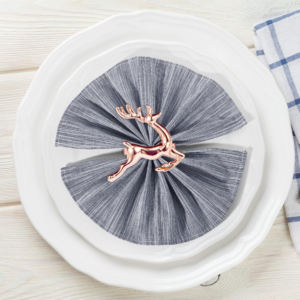- Q: How do the napkin rings enhance table decor? A: The rose gold elk design adds a charming and elegant touch to your table, complementing your dinner setup beautifully.