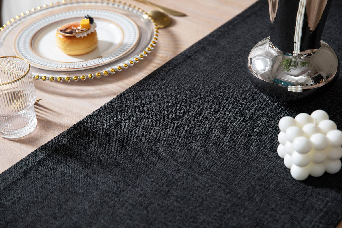 Zeemart Burlap Style Farmhouse Table Runners 36 Inches Long, Black Rustic Woven Dining Table Runner For Everyday Use, 14X36 Inch