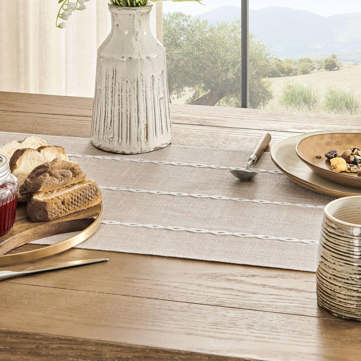 Zeemart Farmhouse Table Runner, Rustic Table Runners 36 Inches Long, Linen Boho Table Runner, Braided Striped Cream Table Runner