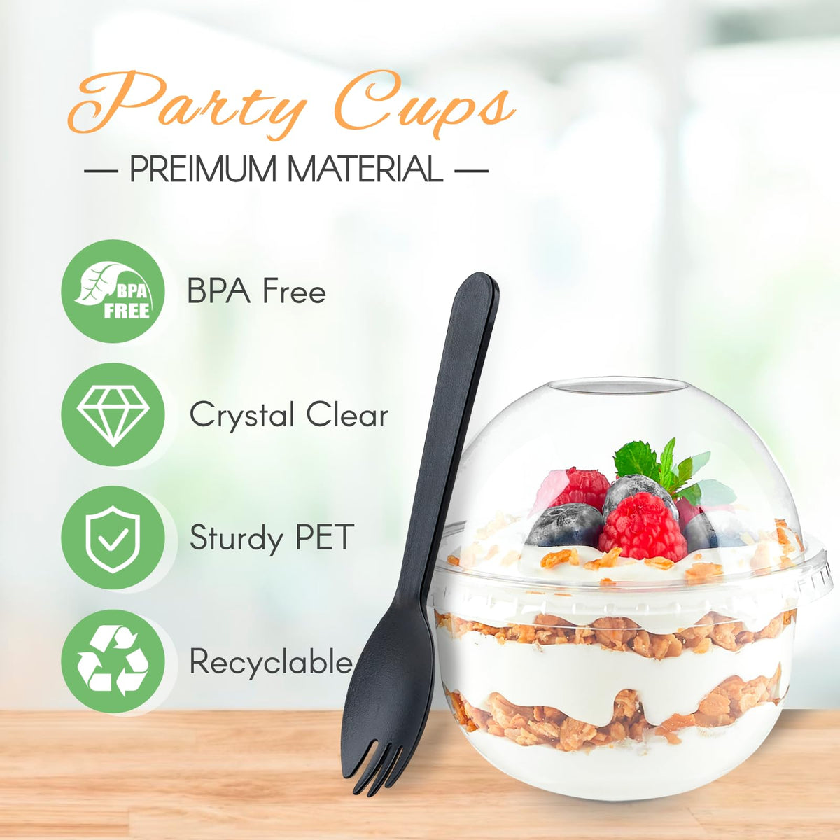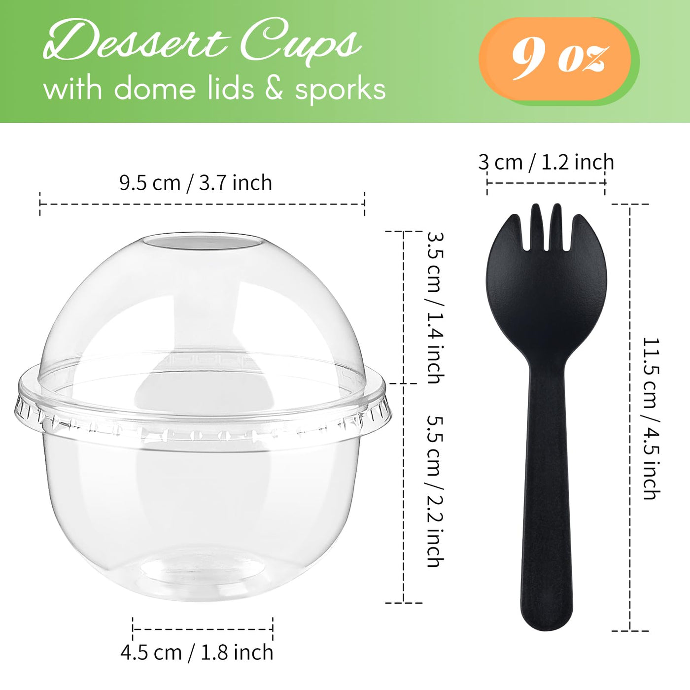 Zezzxu 50 Pack 9 Oz Plastic Dessert Cups With Dome Lids (No Hole) And Sporks, Disposable Snack Cups For Fruits, Ice Creams, Cake
